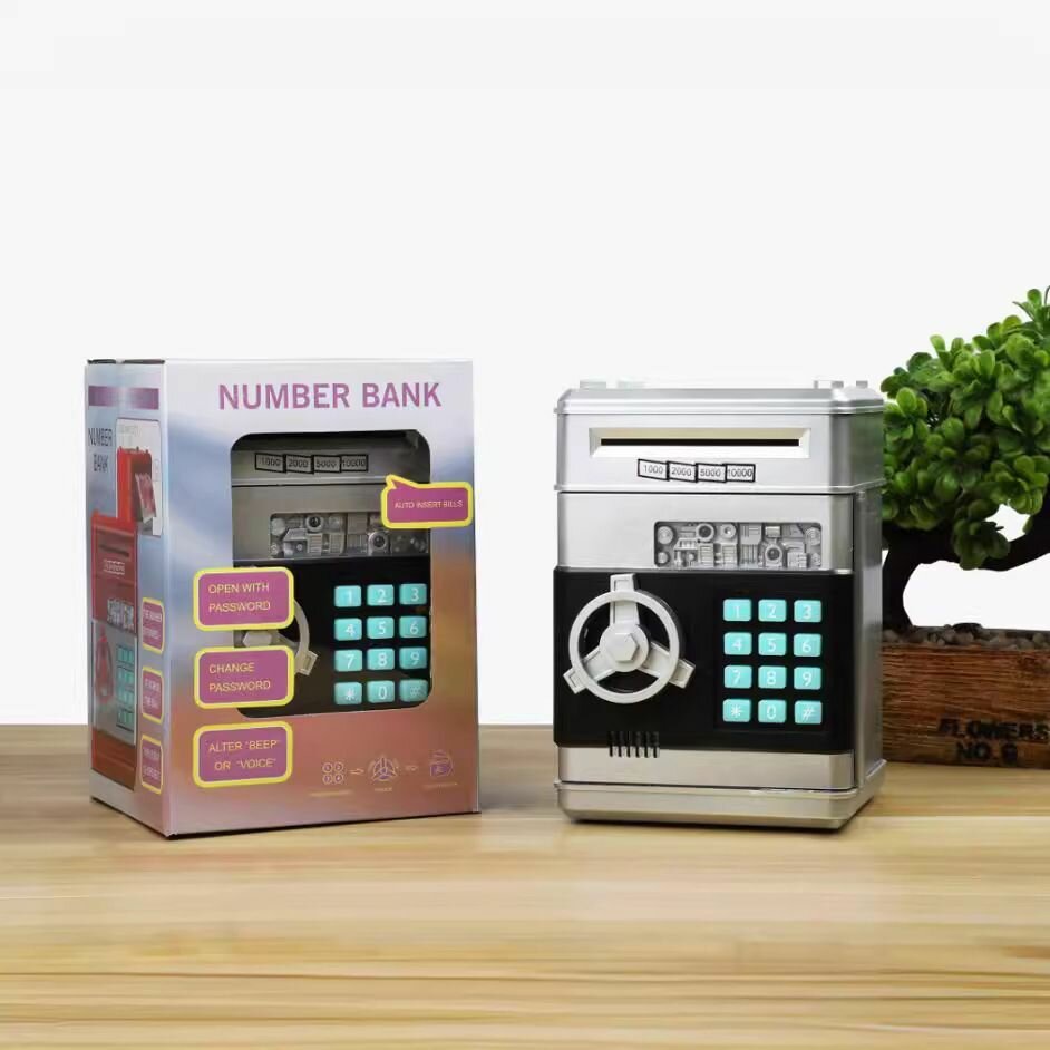 Детская электронная копилка сейф для денег с купюроприёмником и с кодовым замком, серебристая интересное: