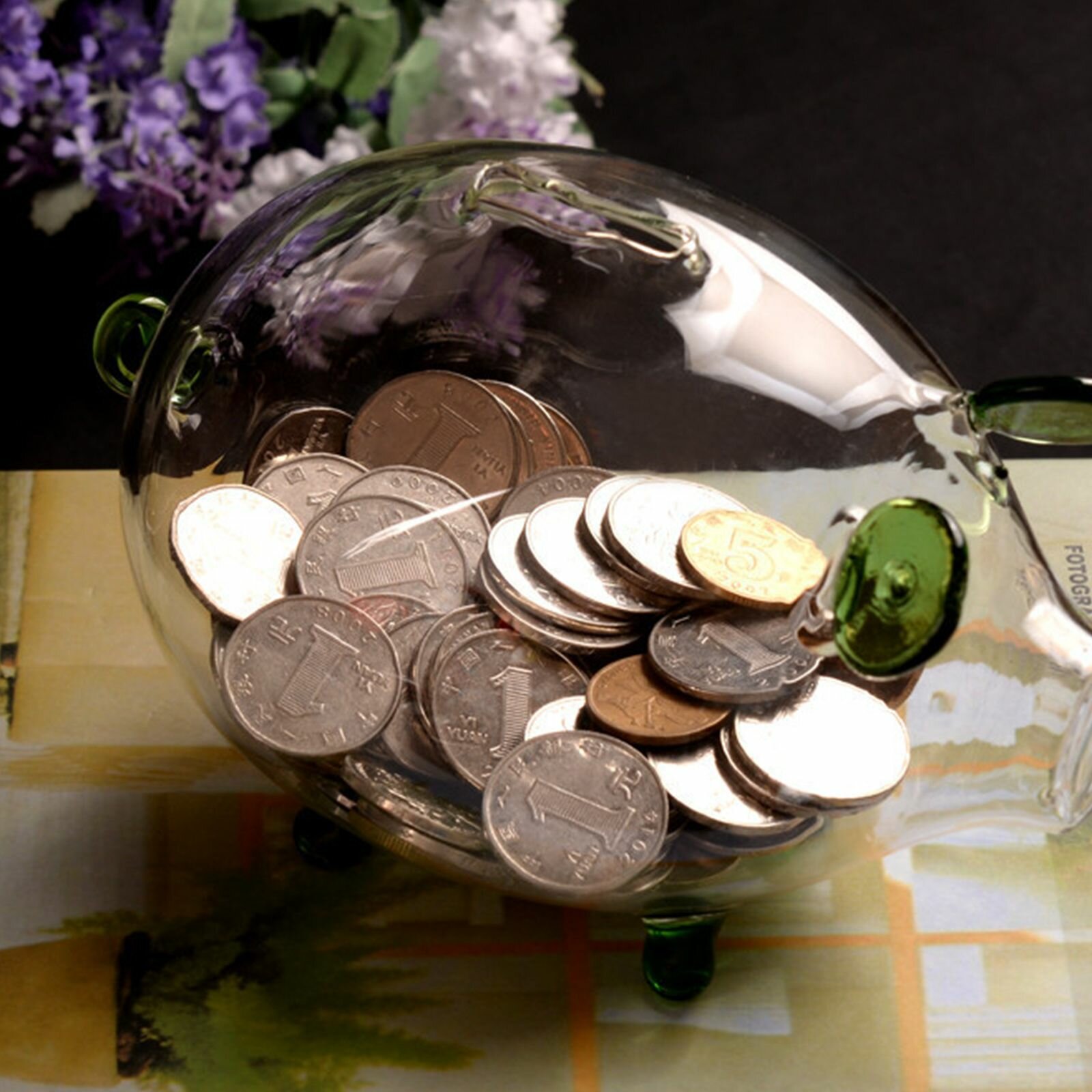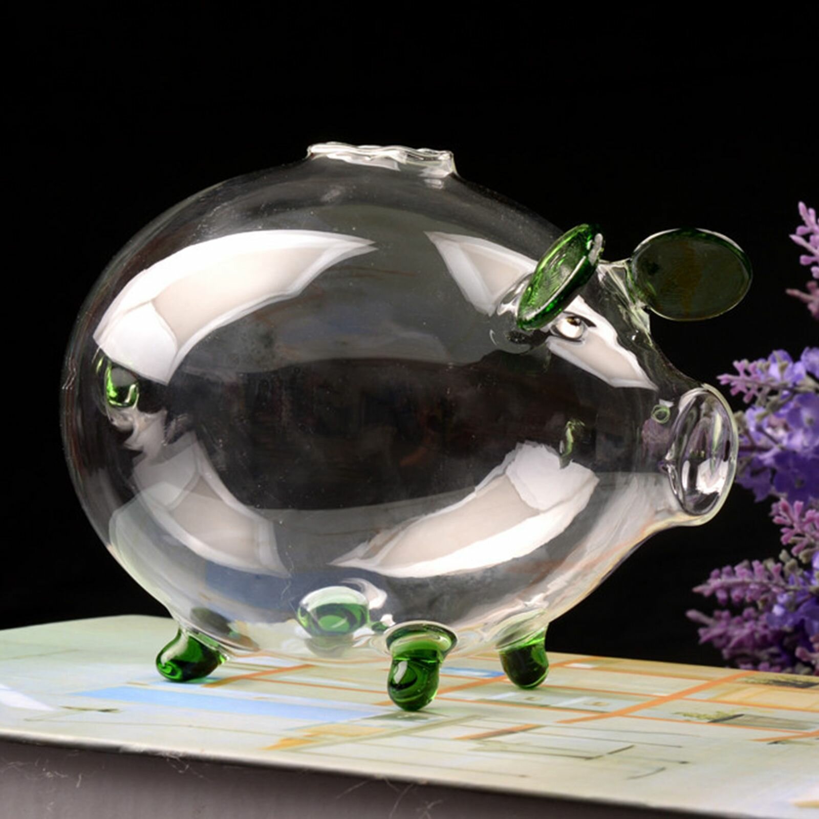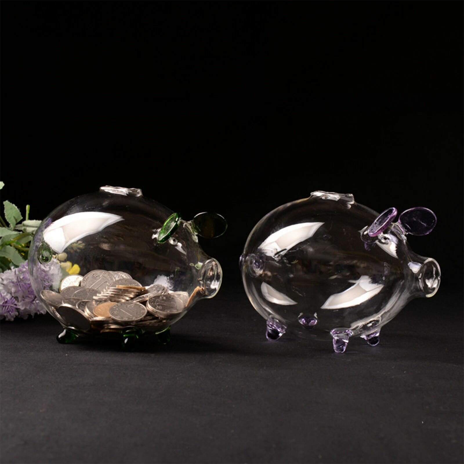 Копилка, Стеклянная копилка в виде маленькой свиньи - фиолетовая