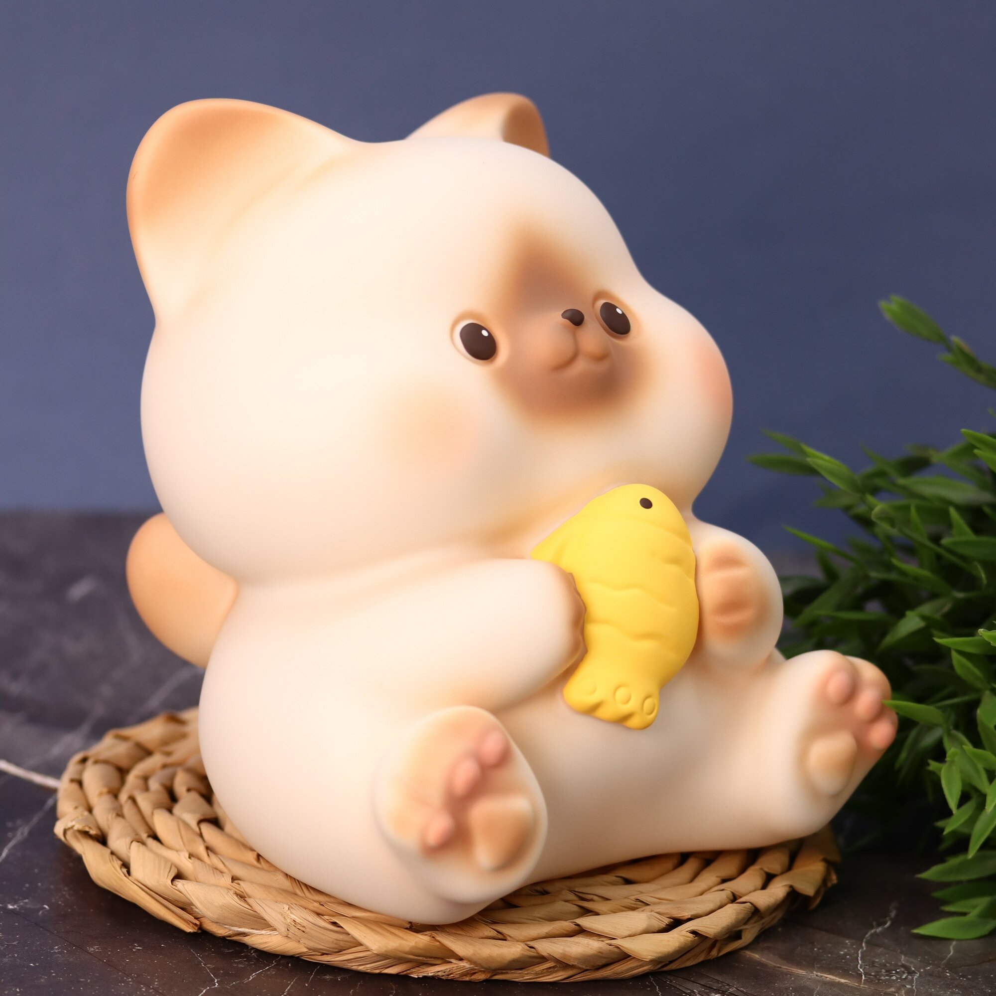Купить Копилка для денег пластиковая "Cat with fish", beige, 17 см