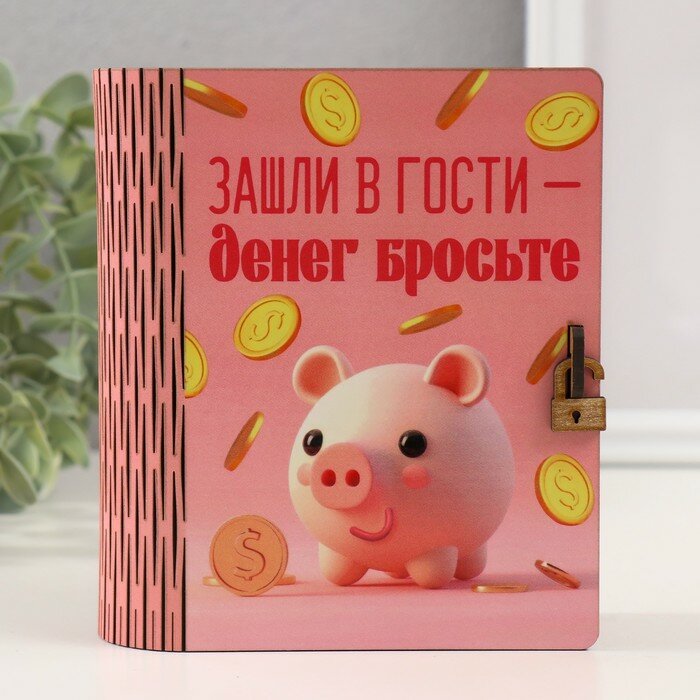 Книга-копилка для денег "Не сдавайся", для купюр, монет, дерево, 14x12x5 см