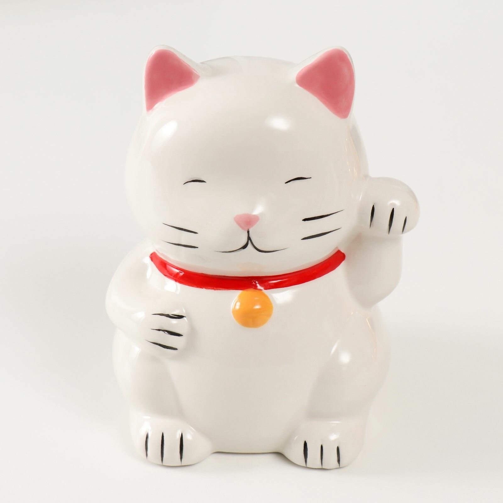 Купить Копилка керамика "Белый кот Манэки-нэко" 10х10х14,5 см