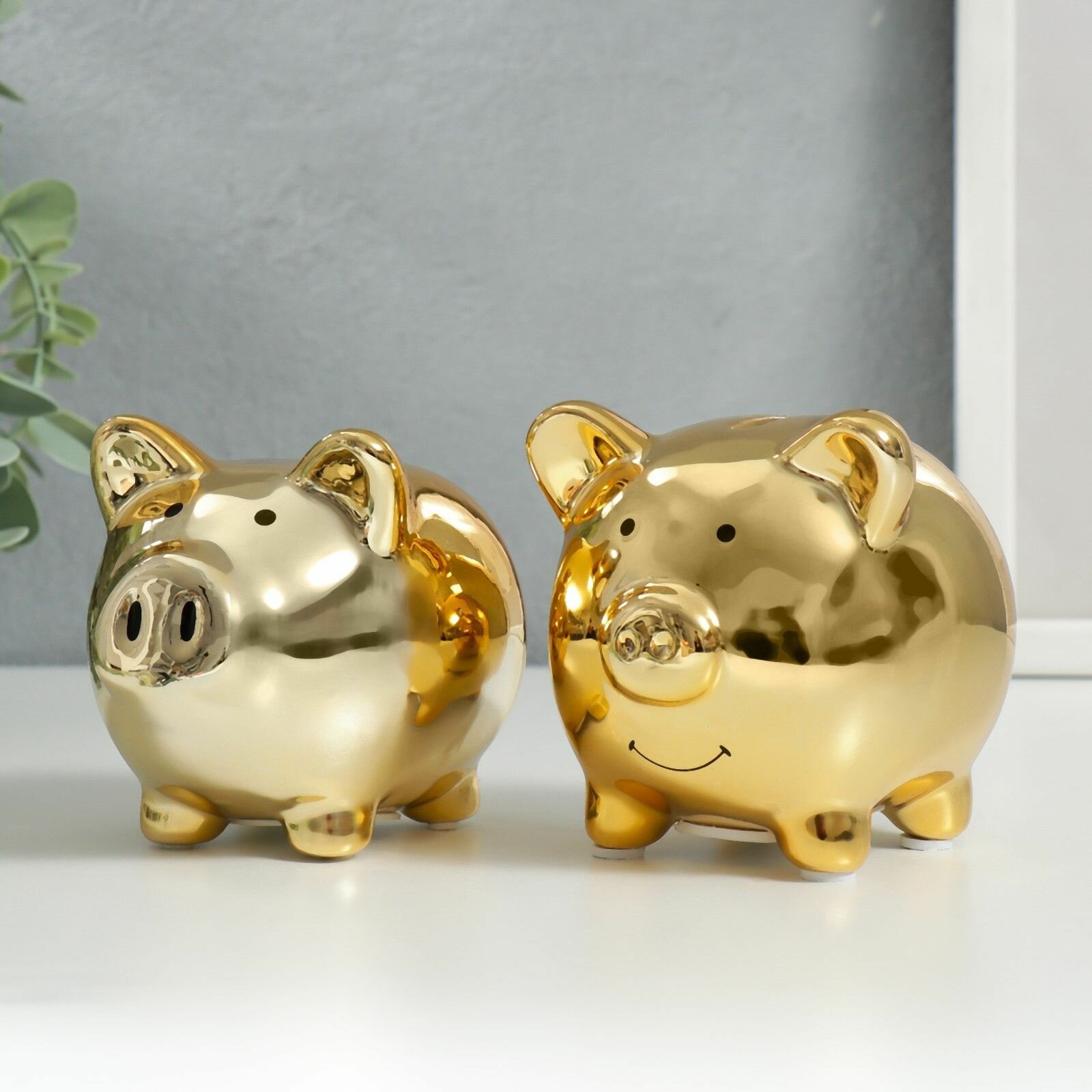 Копилка для денег "Свинки: Накопилка", керамика, золотая, 12.5x8x14 см