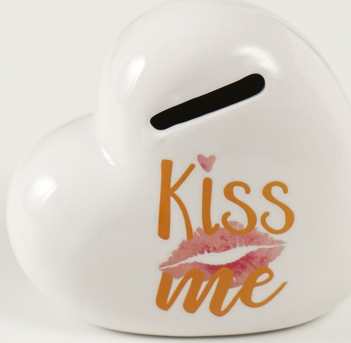 Купить Копилка керамика "Белое сердце - Kiss me" 11х5х10,5 см