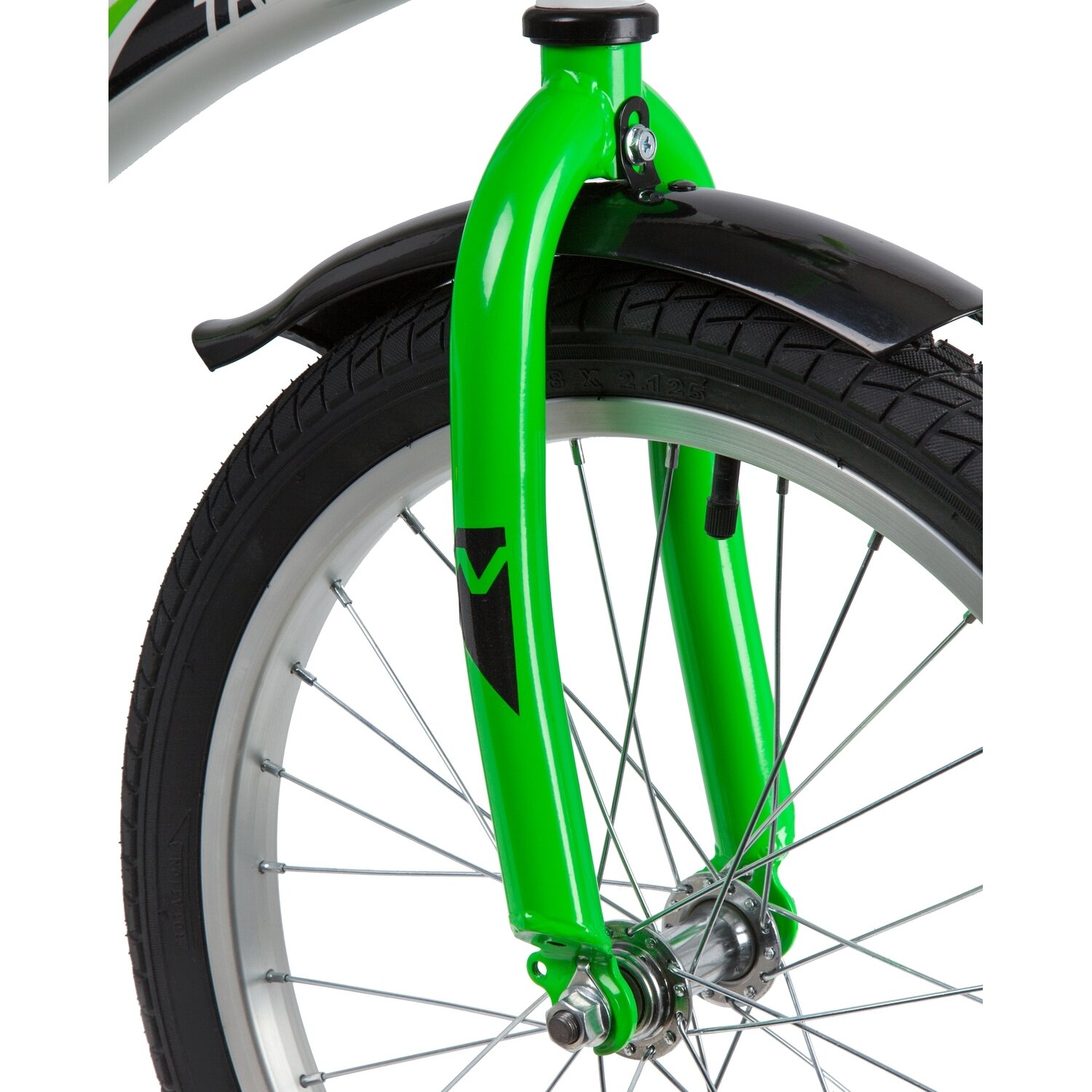 Велосипед NOVATRACK 18" STRIKE белый-зелёный, тормоз нож, крылья корот, защита А-тип 183STRIKE.WTG20