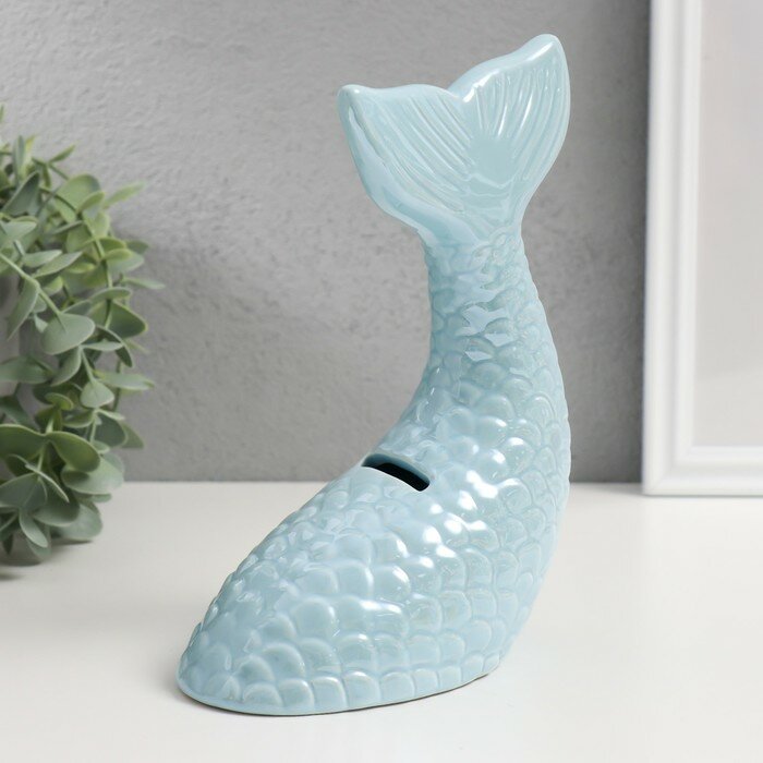 Купить Копилка керамика "Хвост русалки" голубой перламутр 16х9х18,8 см