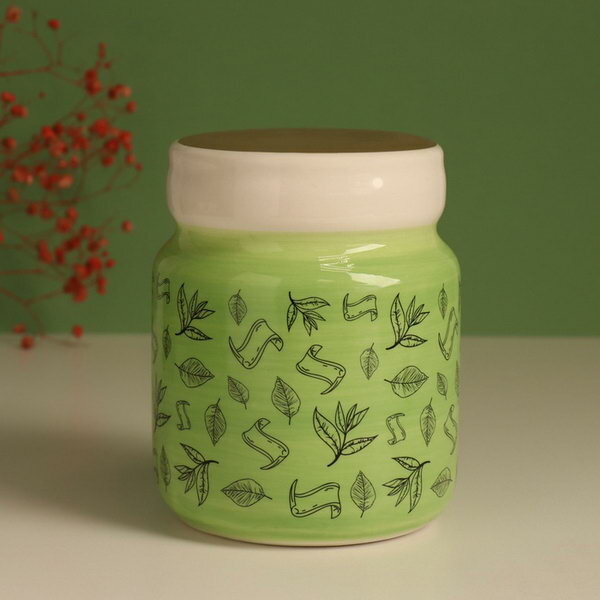 Купить Копилка для денег "Зелень в банке", керамика, 11.5x11.5x14.3 см