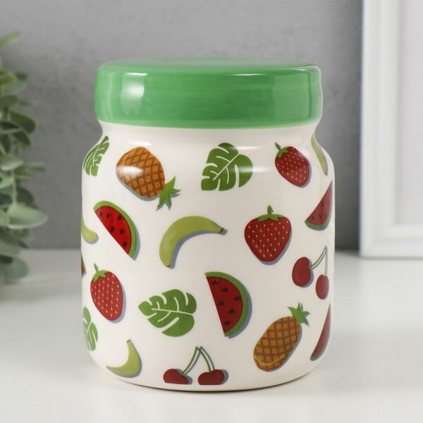 СохранитьКопилка для денег "Банка с фруктиками", керамика, 11.5x11.5x14.3 см интересное: