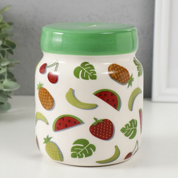 Купить Копилка для денег "Банка с фруктиками", керамика, 11.5x11.5x14.3 см