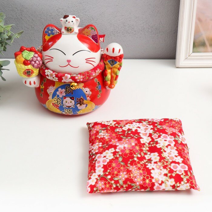 Купить Копилка керамика "Кот Манэки-нэко для благополучия и изобилия" красный 14х20х20,5 см