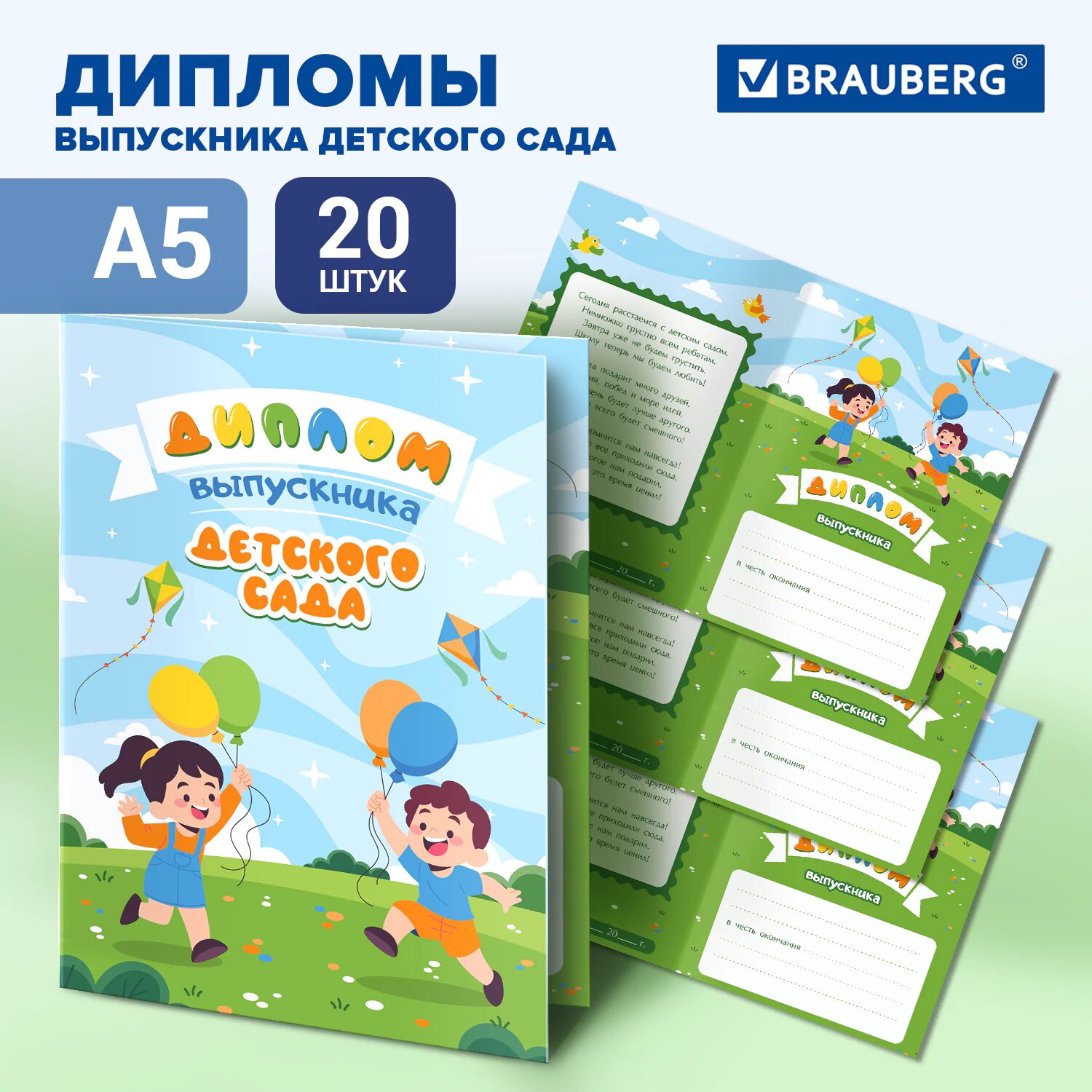 Купить Диплом Выпускника детского сада, грамота детям набор 20 штук, А5 в сложенном виде, мелованный картон, набор 20 шт, Brauberg, 117538