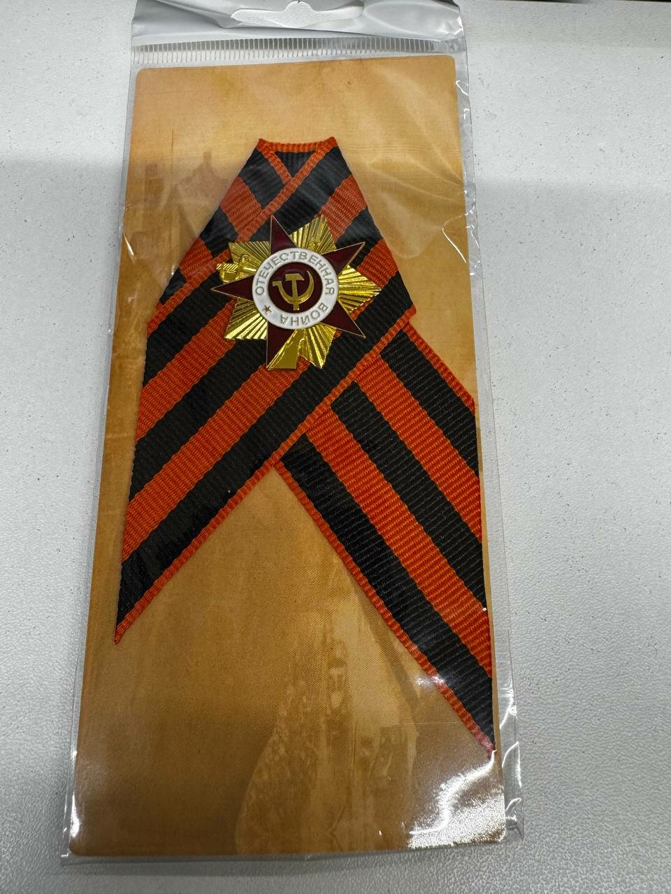 Купить Значок с георгиевской лентой со значком Отечественной войны СССР, металлический, коллекционный