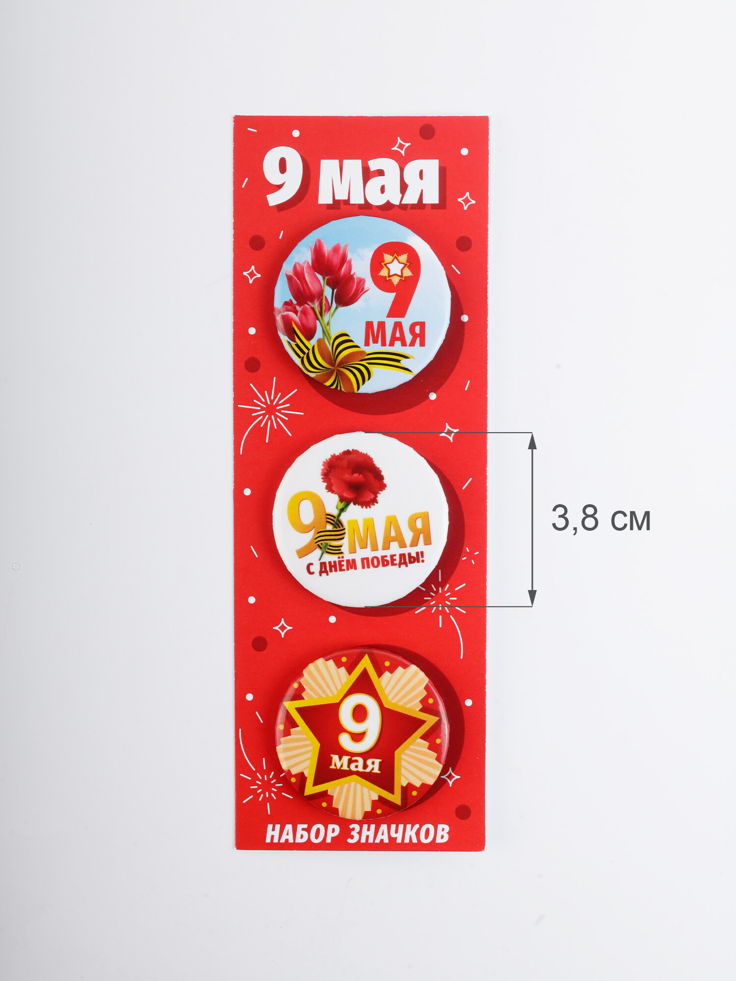 Купить Значки 9 мая, комплект из 3 шт. на подложке / красный фон / подарок на день Победы
