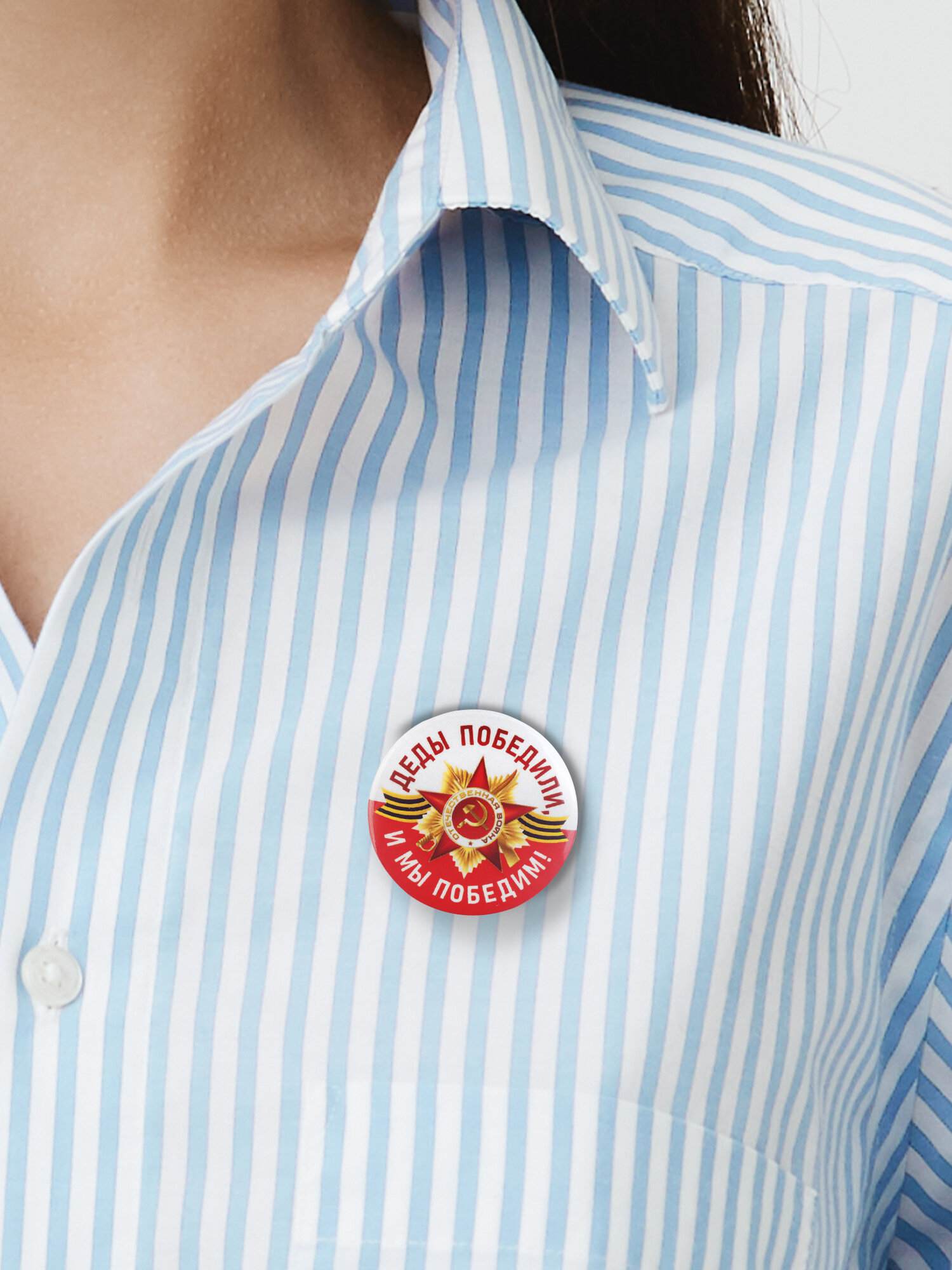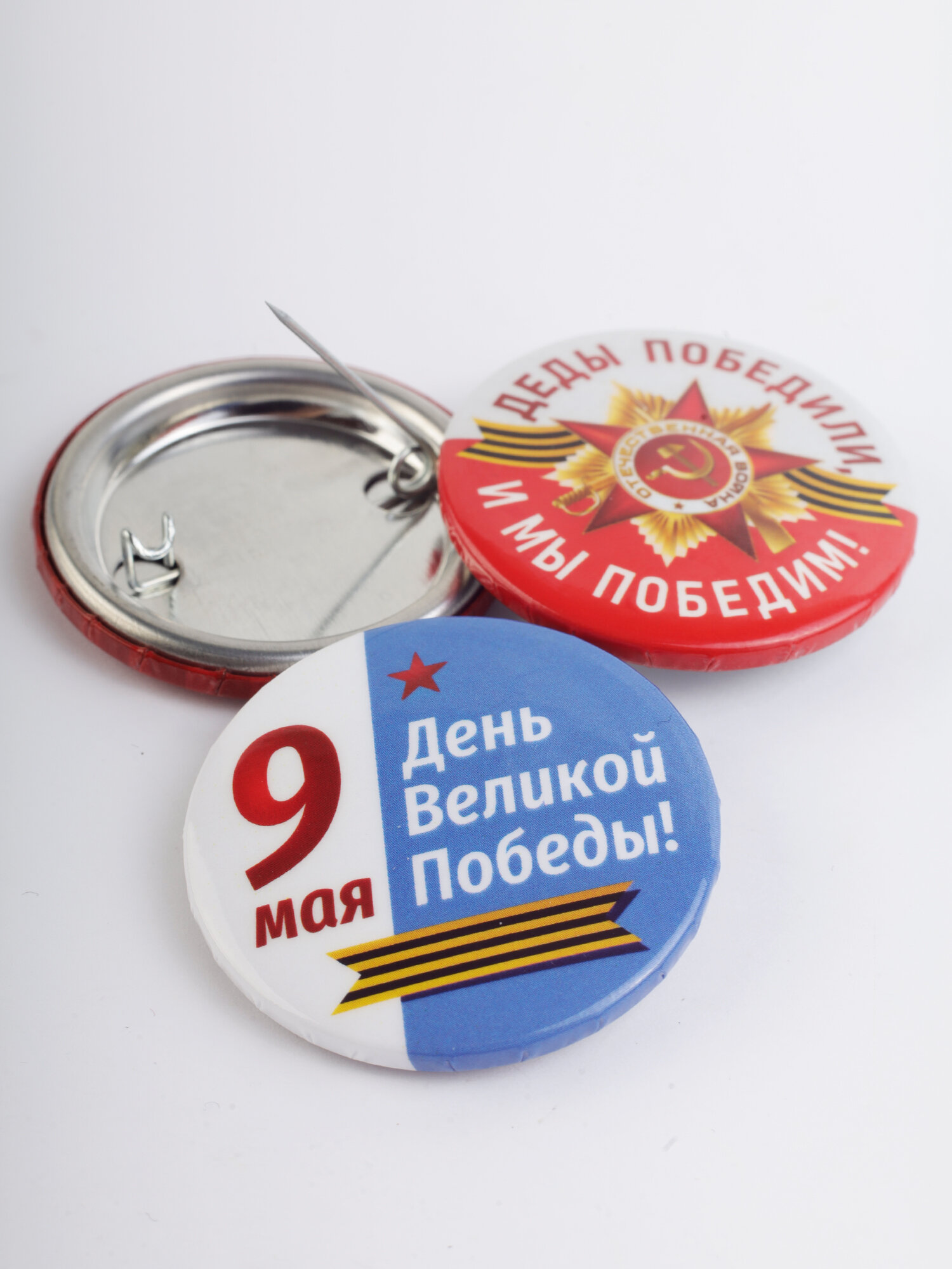 Набор закатных металлических значков 3 шт. "9 мая / голубой фон" интересное: