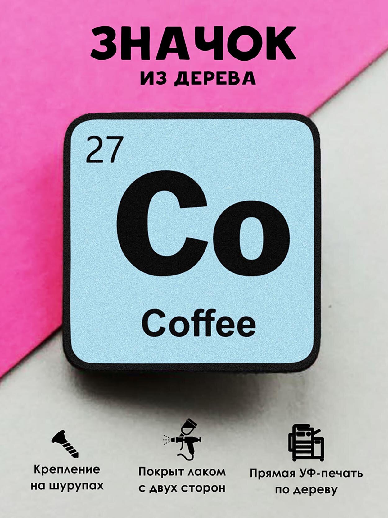 Значок Mr. Znachkoff "Coffee", дерево, УФ-печать, влагостойкий лак, ручная сборка, на рюкзак интересное: