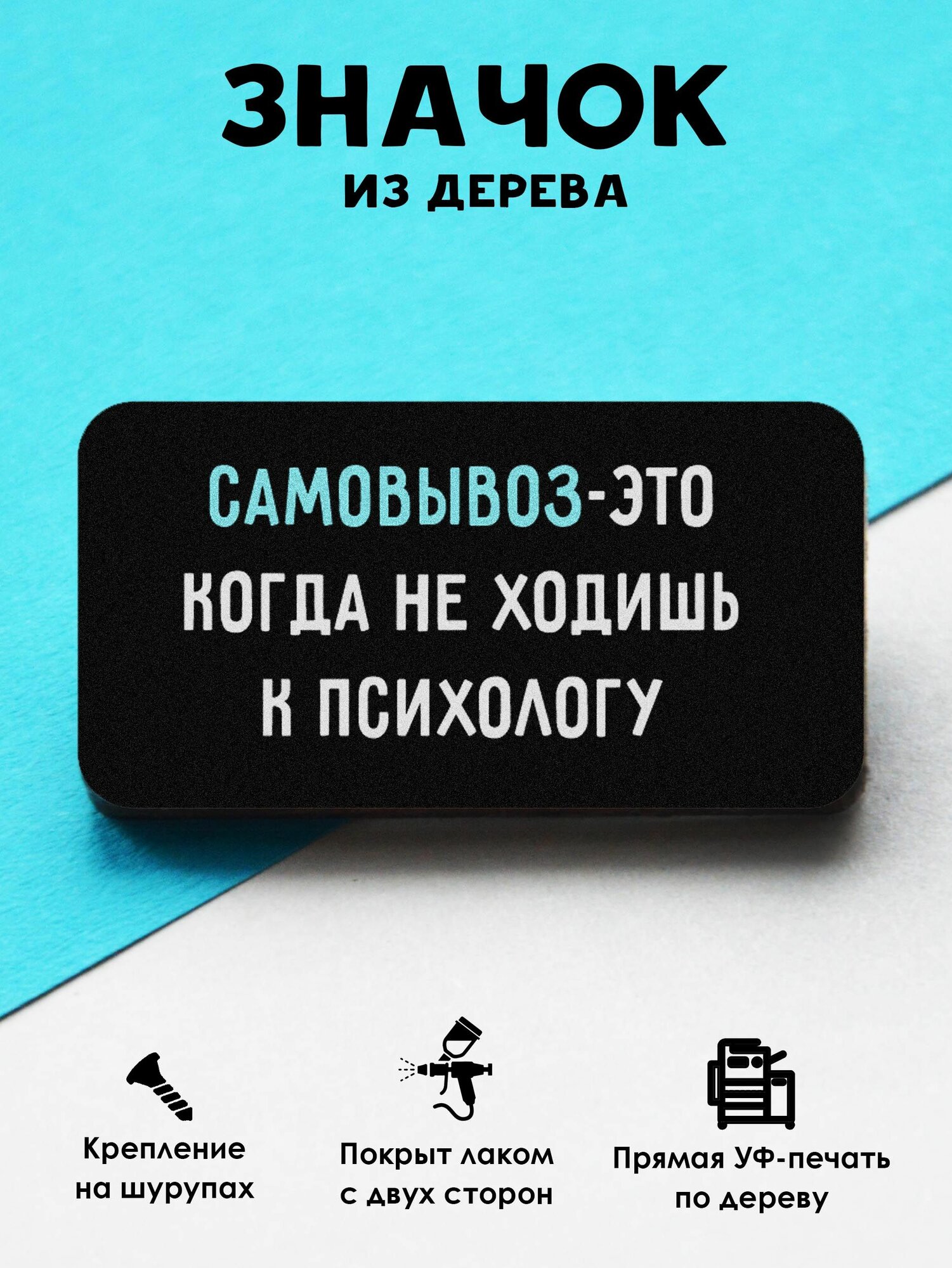 Значок Mr. Znachkoff "Самовывоз", дерево, УФ-печать, влагостойкий, на рюкзак, прикольный интересное: