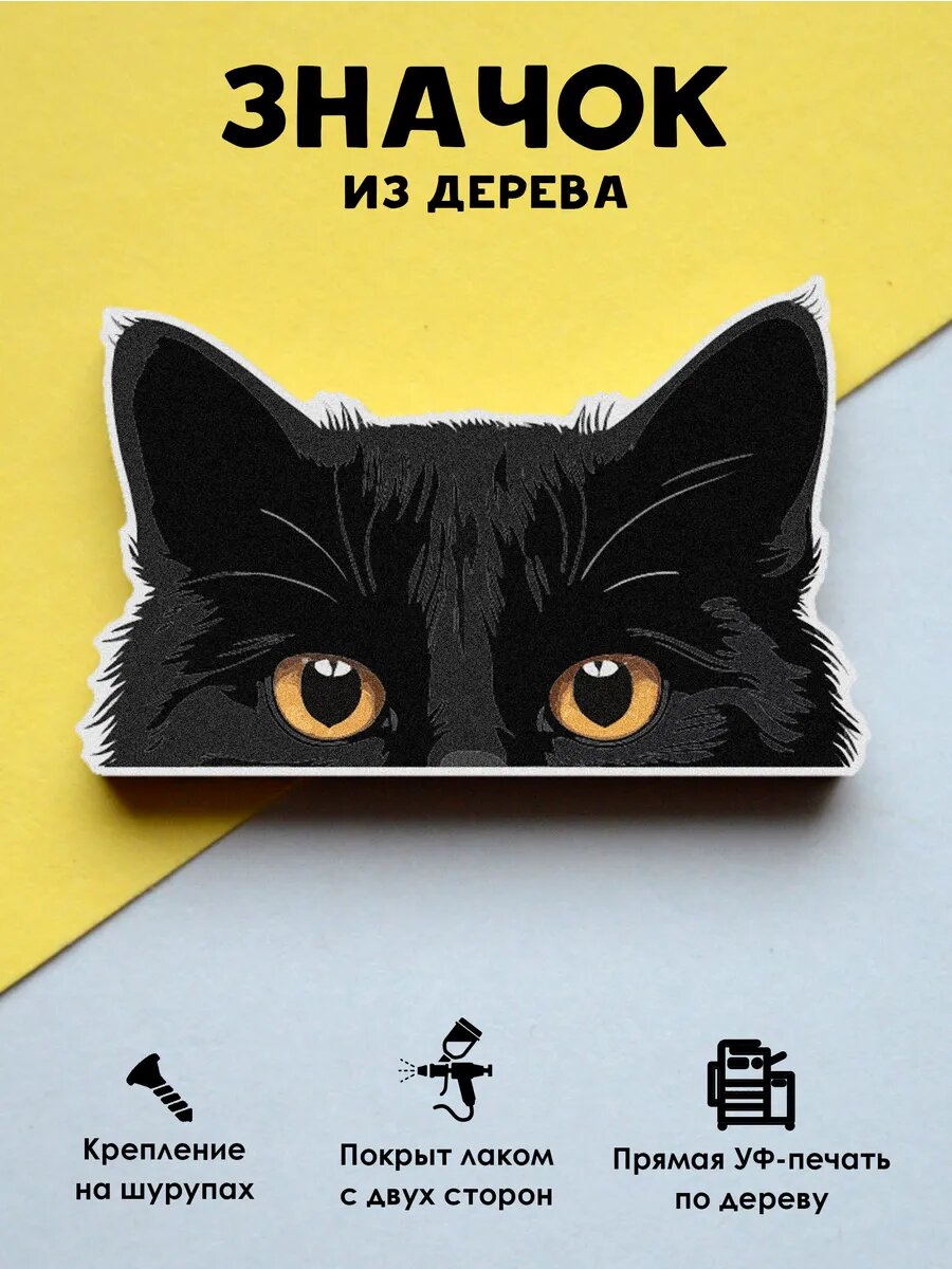 Купить Значок Mr. Znachkoff "Кот выглядывает", дерево, УФ-печать, влагостойкий, на рюкзак