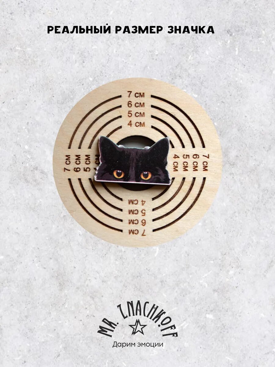 Значок Mr. Znachkoff "Кот выглядывает", дерево, УФ-печать, влагостойкий, на рюкзак интересное: