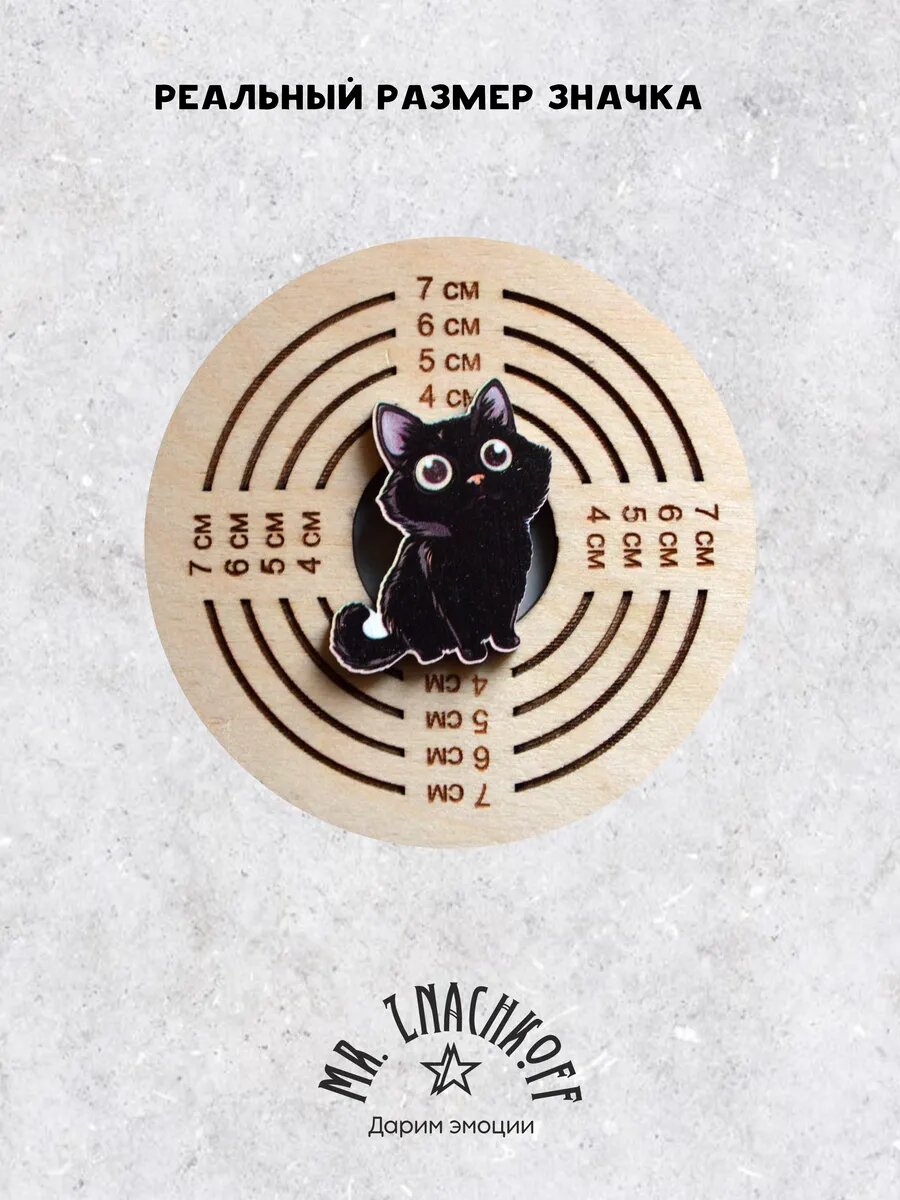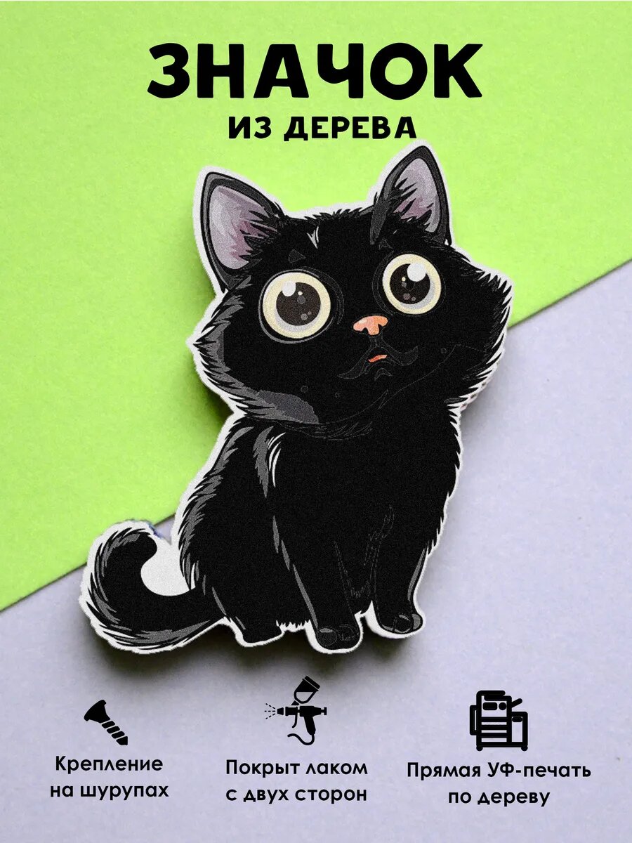 Значок Mr. Znachkoff "Черный кот", дерево, УФ-печать, влагостойкий лак, на рюкзак интересное: