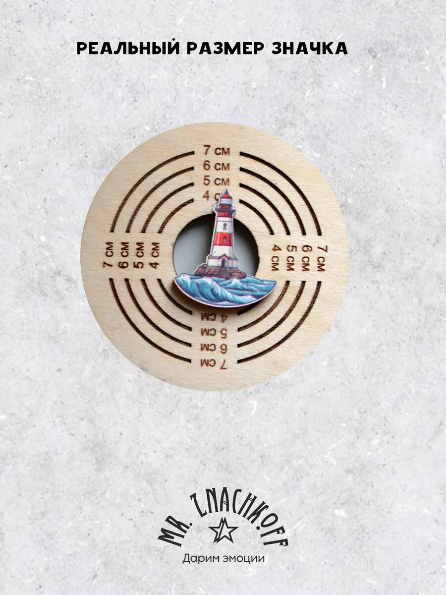 Значок Mr. Znachkoff "Маяк и море", дерево, ручная работа, УФ-принт, 4х4 см интересное: