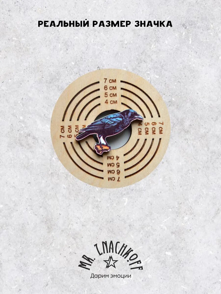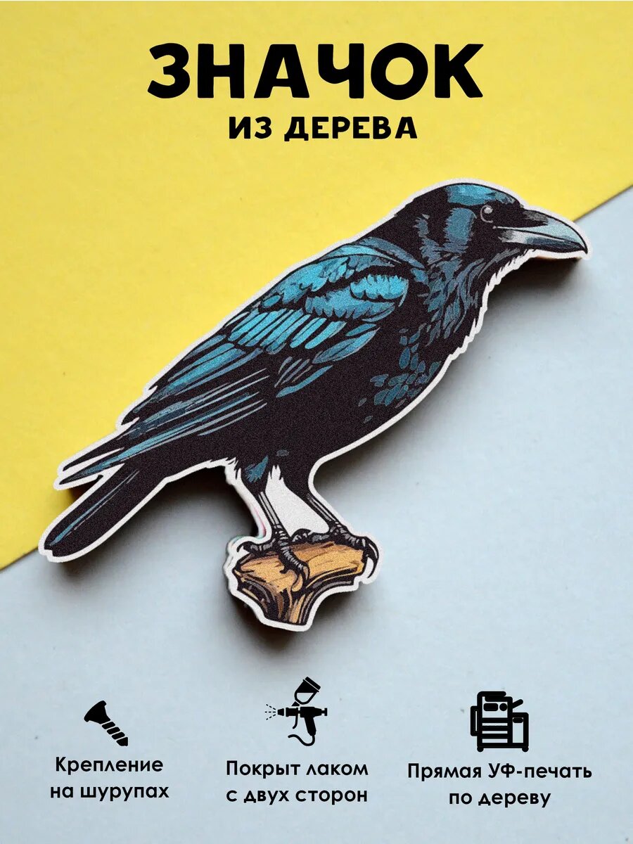 Значок Mr. Znachkoff "Ворон", дерево, УФ-печать, влагостойкий, на рюкзак интересное: