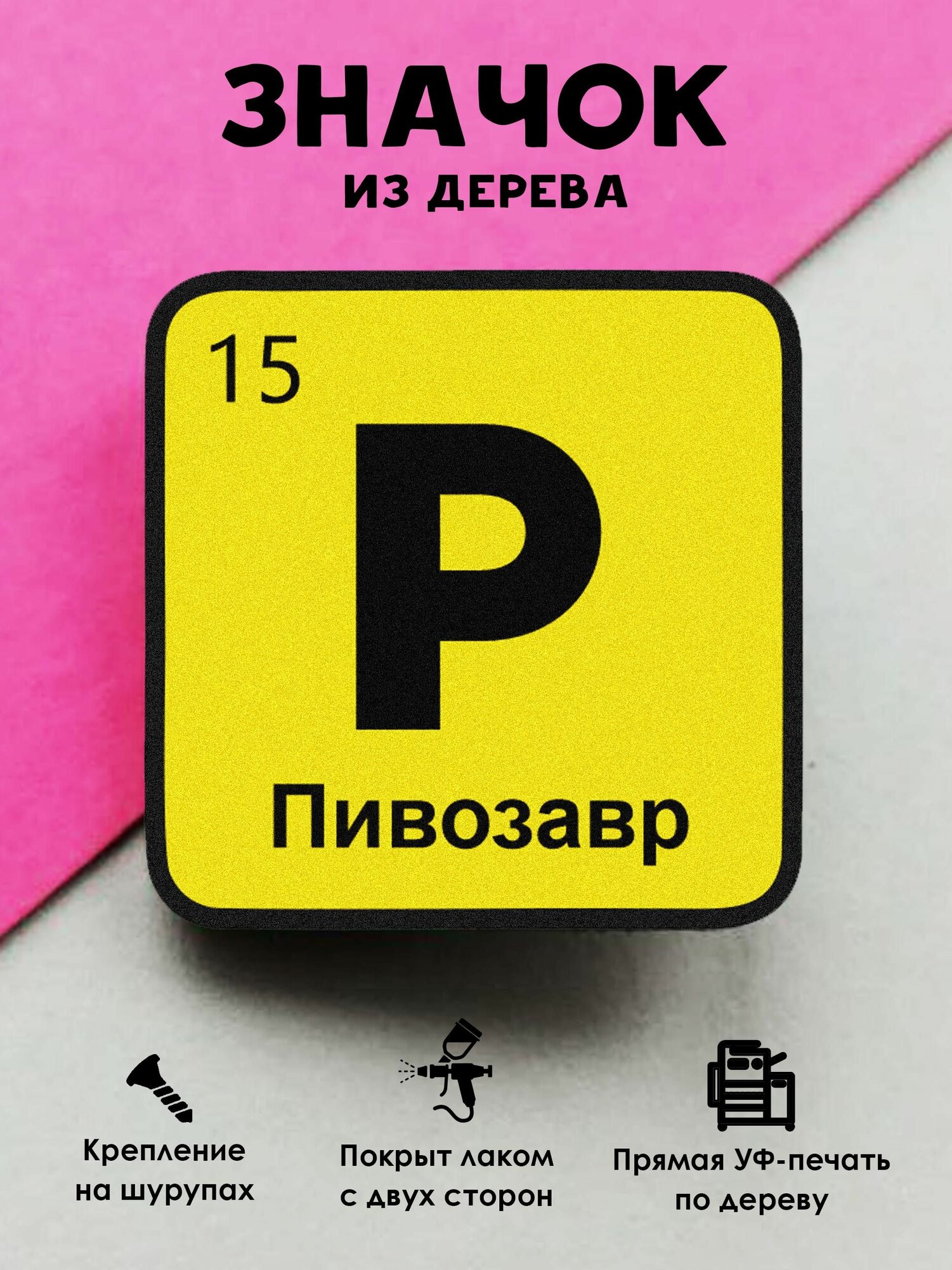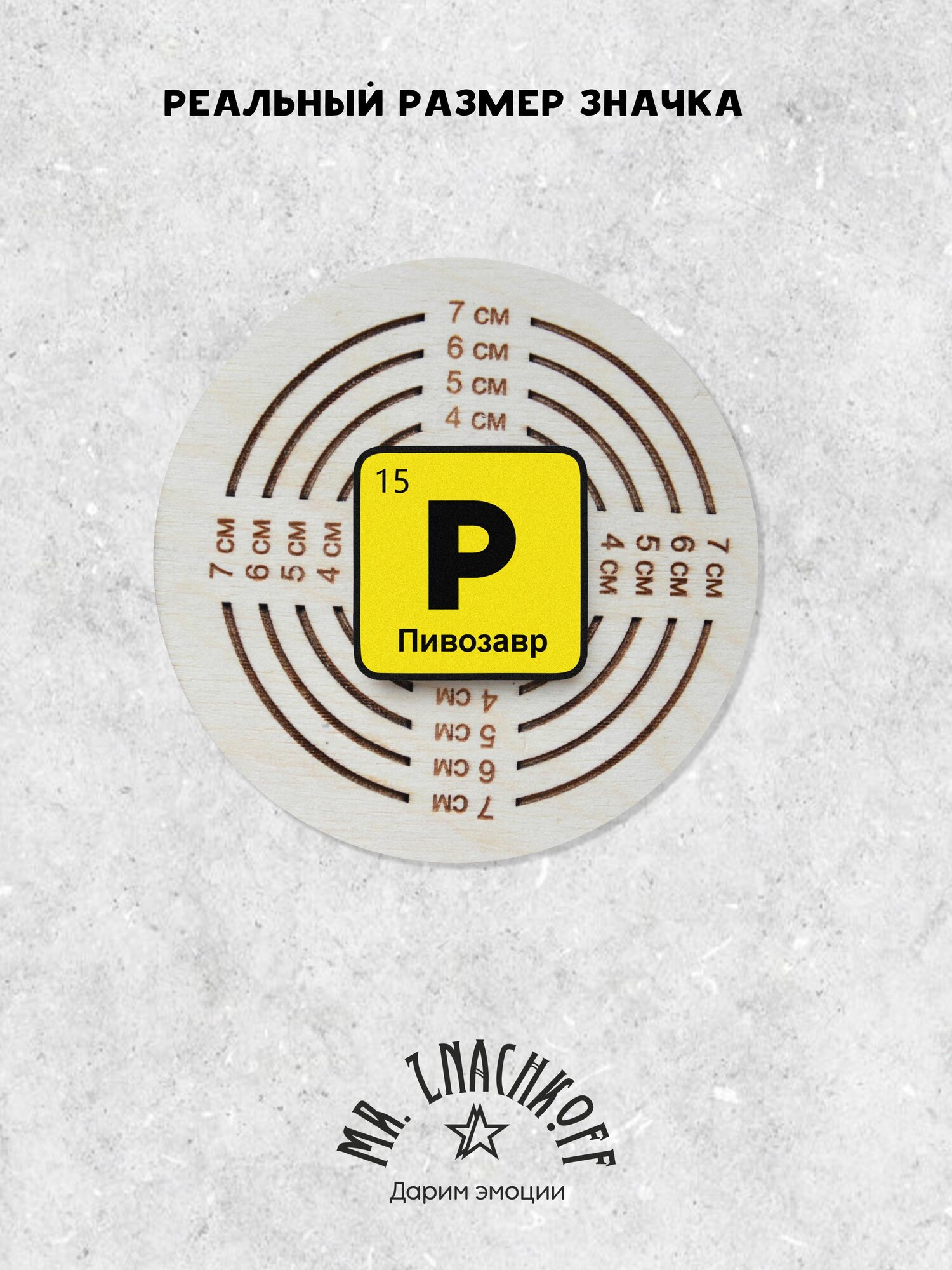 Значок Mr. Znachkoff "хэ Пивозавр", дерево, УФ-печать, влагостойкий, на рюкзак интересное: