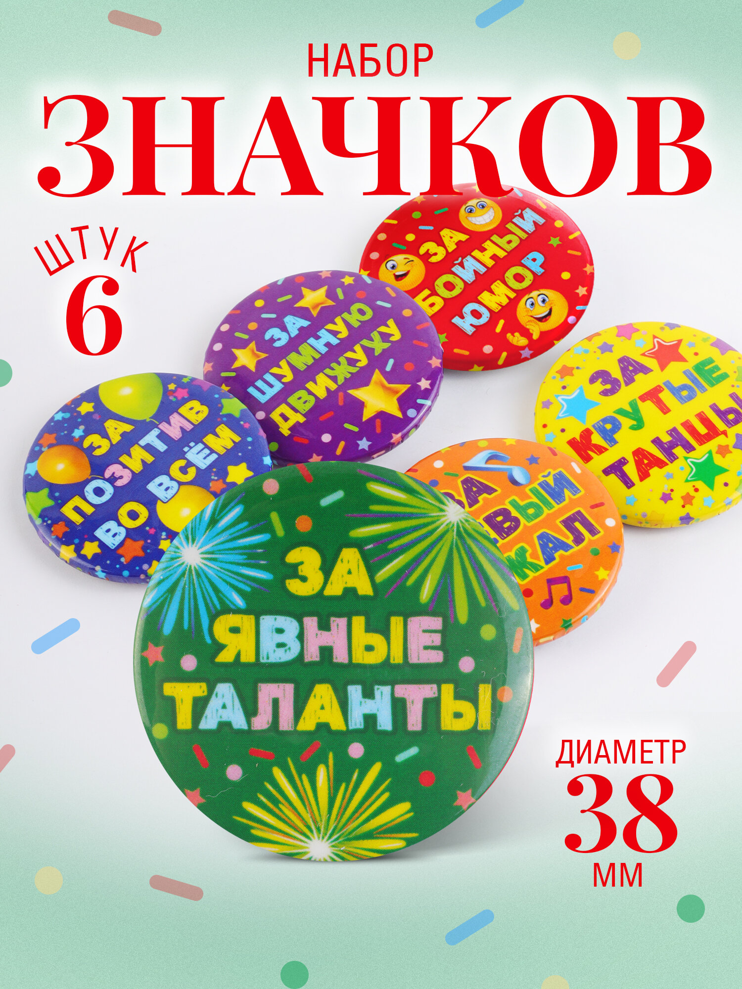 Набор значков закатных 6шт 38мм "Наградные "Для веселых праздников"