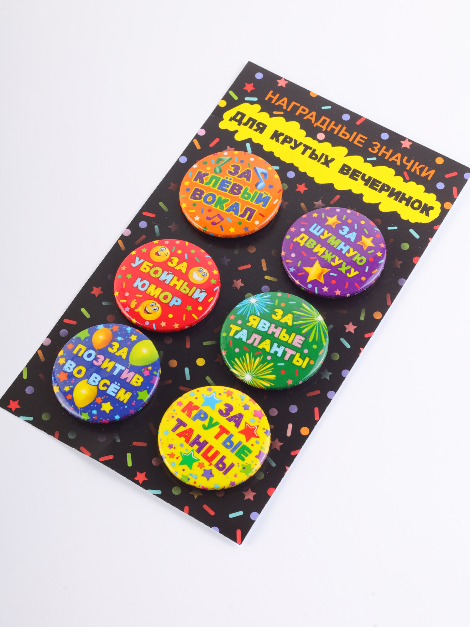 Купить Набор значков закатных 6шт 38мм "Наградные "Для крутых вечеринок"