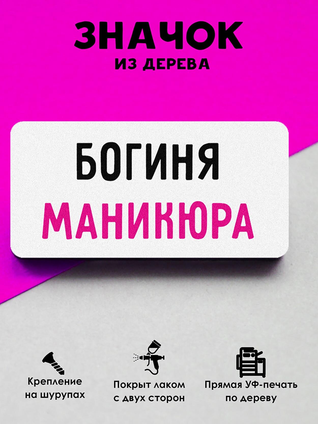 Значок Mr. Znachkoff "Богиня маникюра", дерево, УФ-печать, влагостойкий лак, ручная сборка интересное: