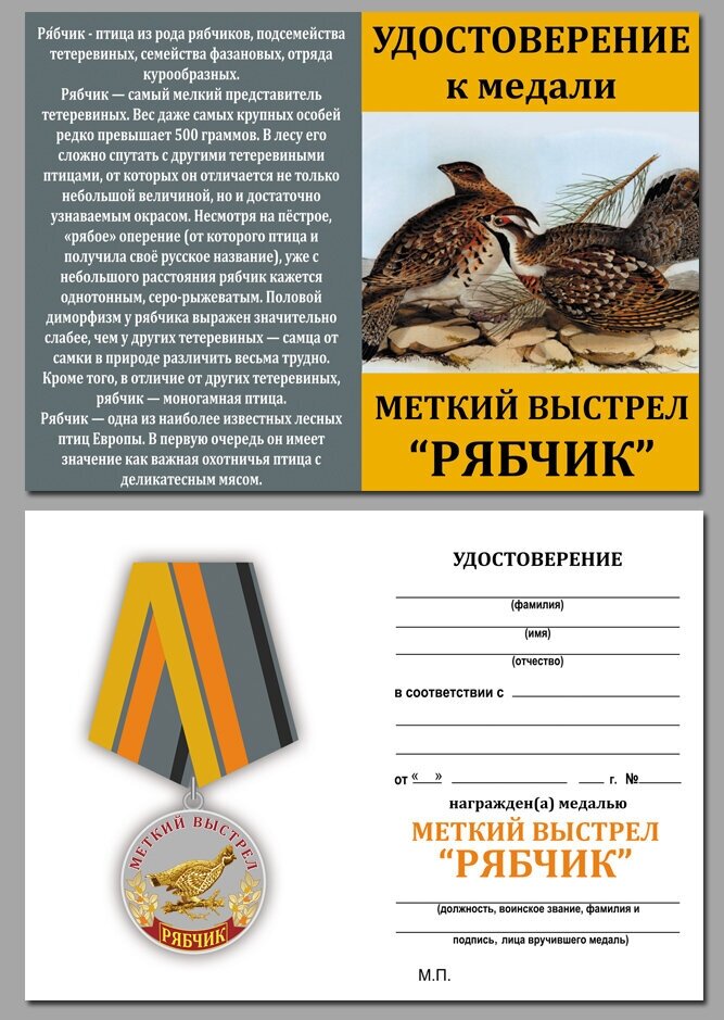 Ниже Вы можете прочитать отзывы на Медаль охотника "Рябчик" (Меткий выстрел), муляж, латунь, диаметр медали 32мм, ознакомится с подробными характеристиками, посмотреть интересные обзоры и фотографии на Медаль охотника "Рябчик" (Меткий выстрел), муляж, латунь, диаметр медали 32мм.