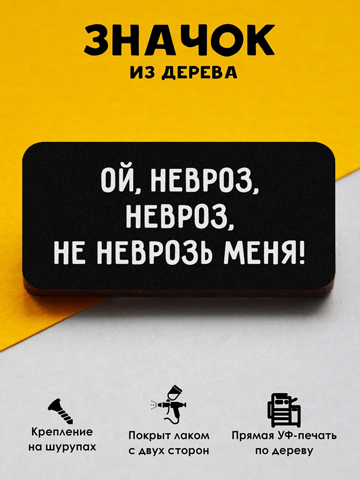 Значок Mr. Znachkoff "Невроз", дерево, УФ-печать, влагостойкий лак, ручная сборка интересное:
