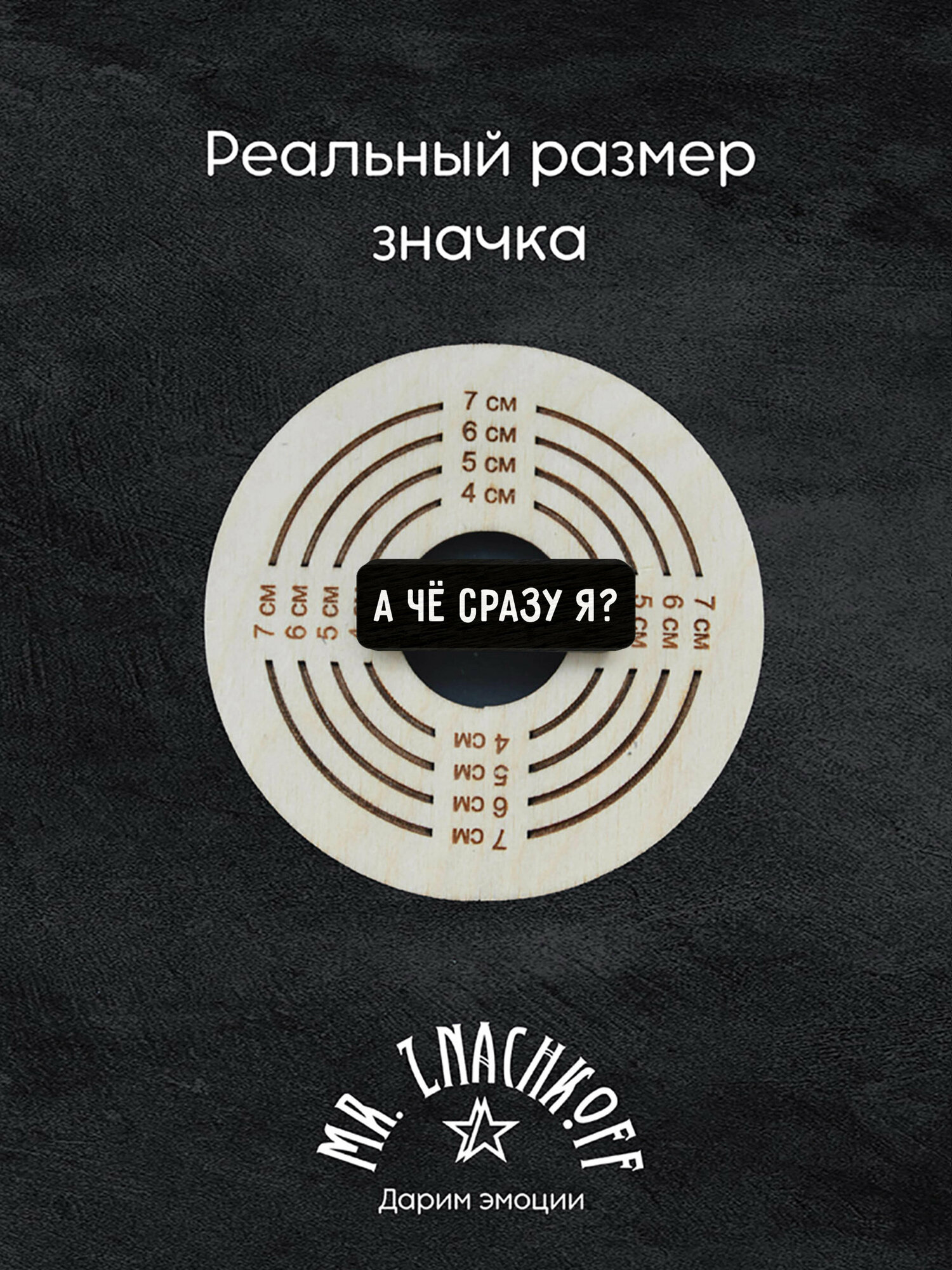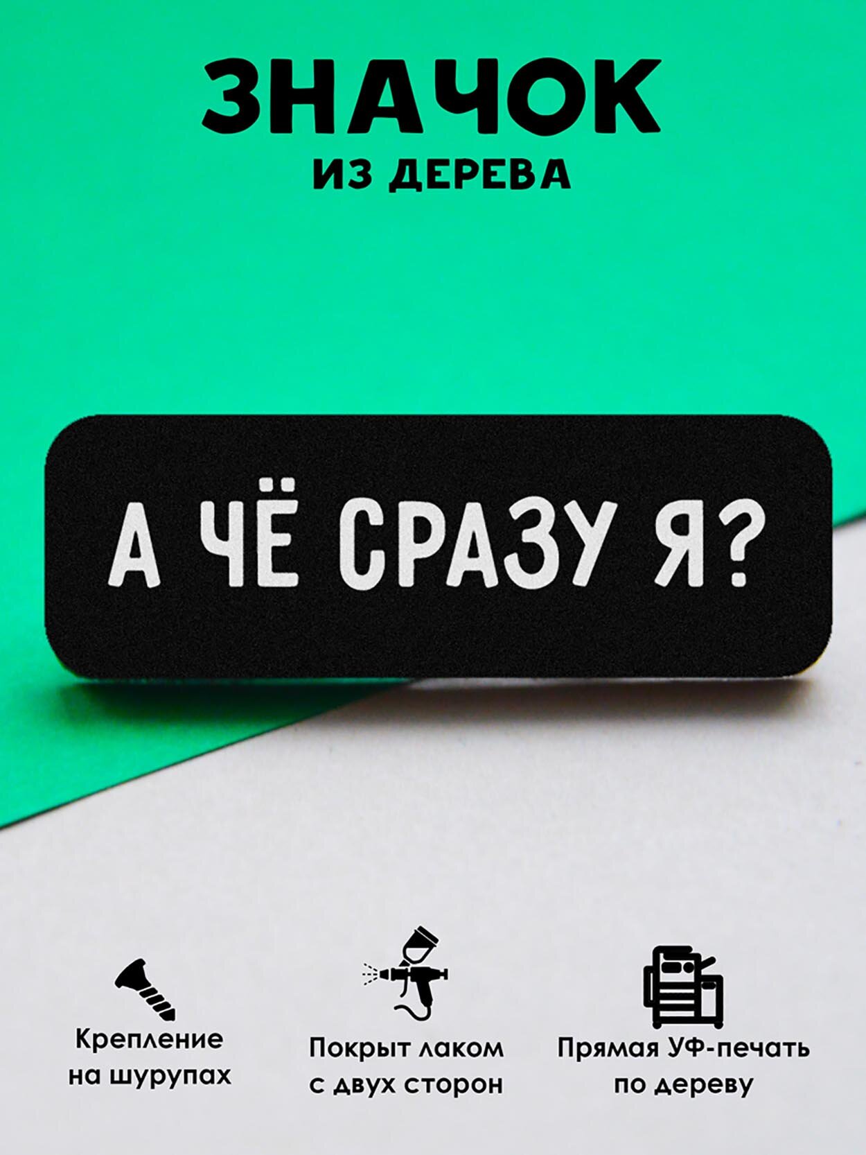 Значок Mr. Znachkoff "А че сразу я?", дерево, УФ-печать, влагостойкий лак, ручная сборка интересное: