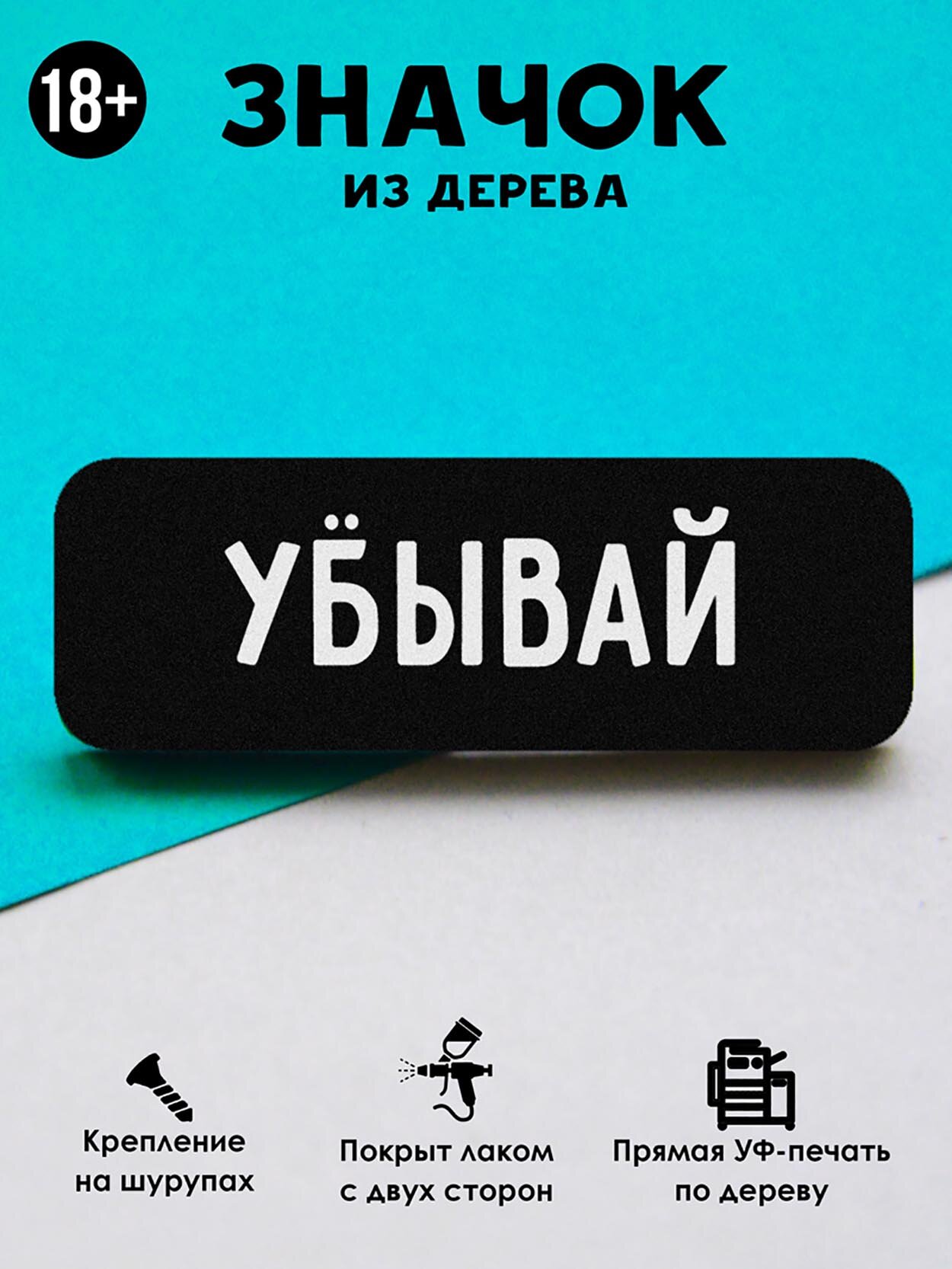 Значок Mr. Znachkoff "Убывай", дерево, УФ-печать, влагостойкий лак, ручная сборка интересное: