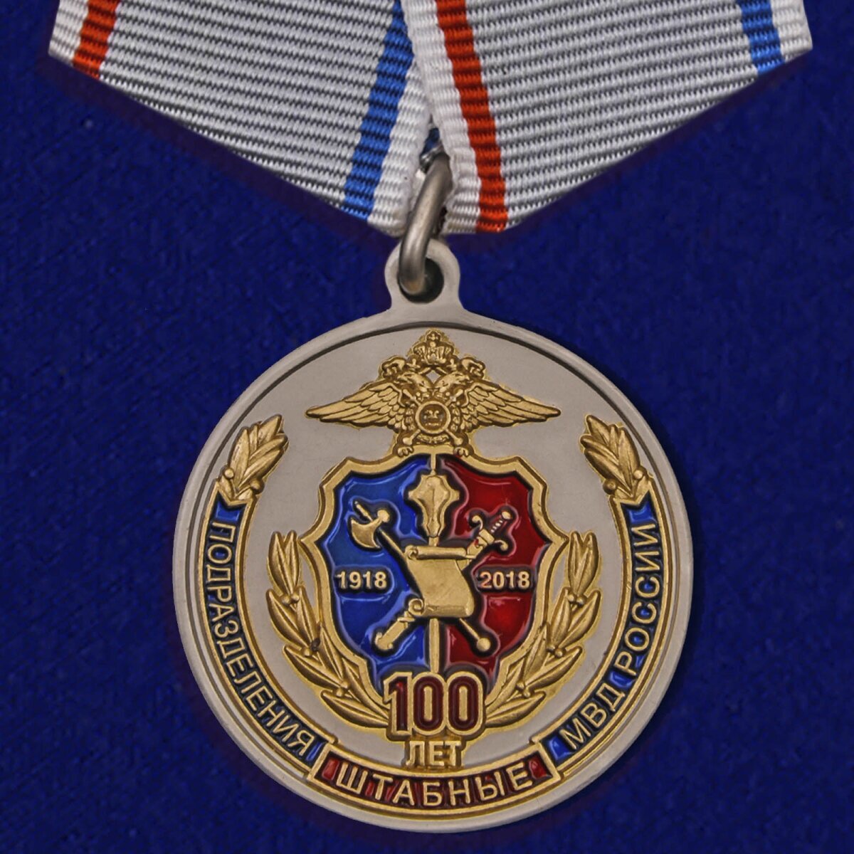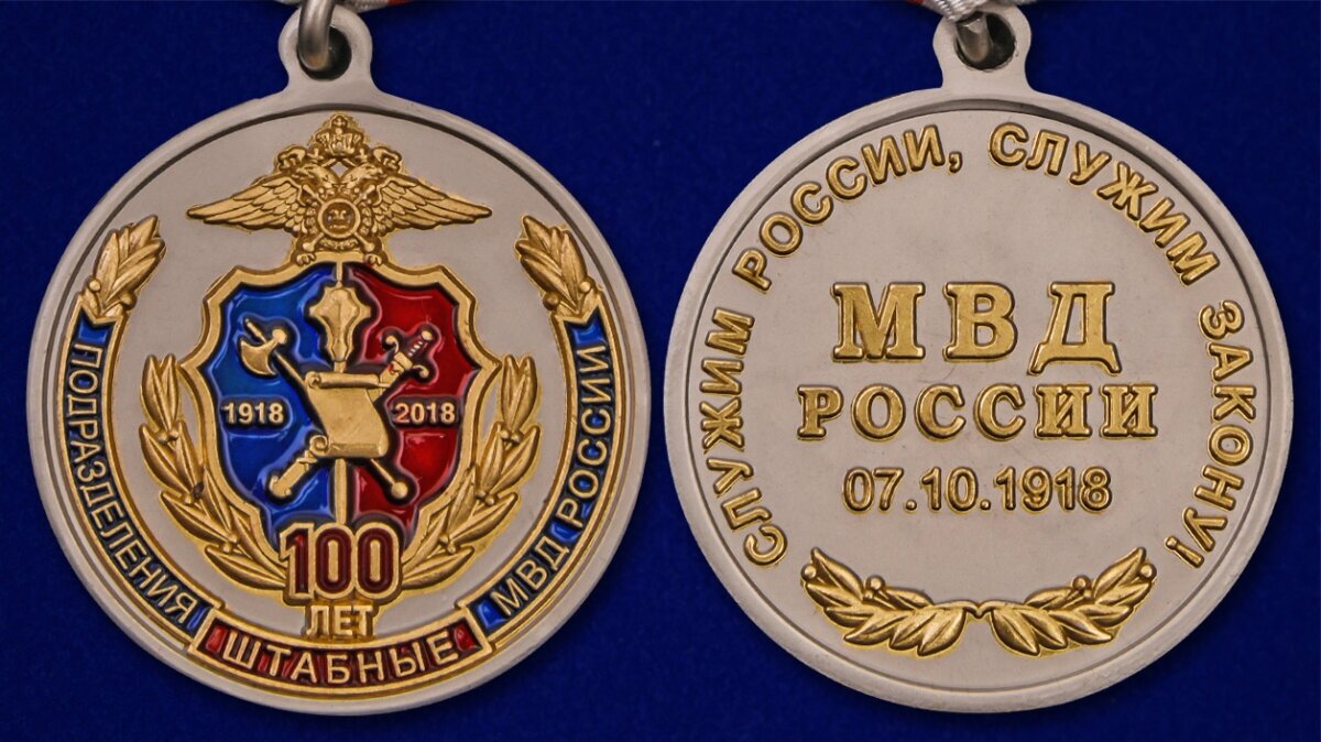 Купить Медаль "100 лет Штабным подразделениям МВД России", муляж, латунь, диаметр медали 32мм