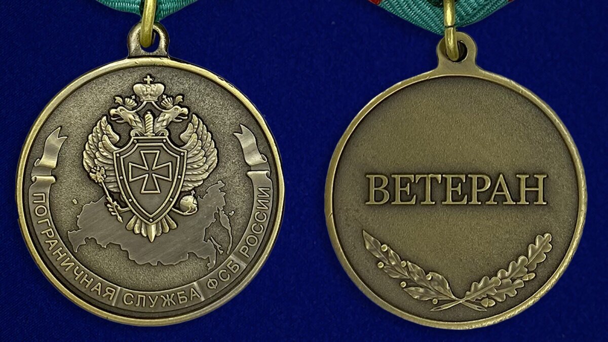 Купить Медаль "Пограничная Служба ФСБ России" (Ветеран), муляж, латунь, диаметр 32мм