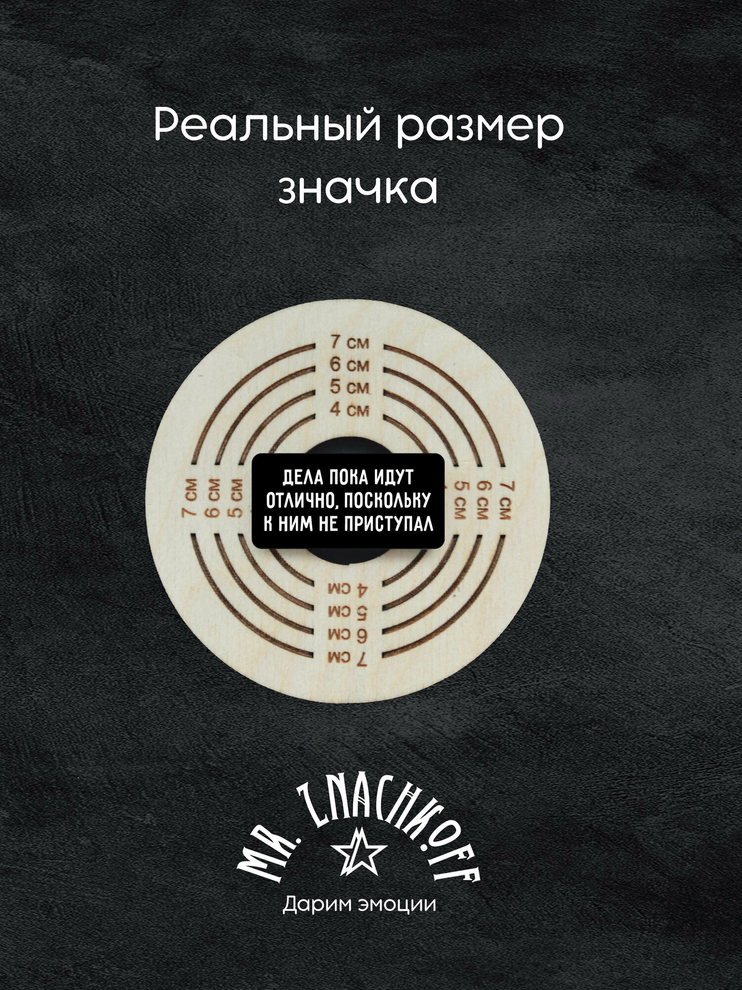 Значок Mr. Znachkoff "Дела идут", дерево, УФ-печать, влагостойкий лак, ручная сборка интересное: