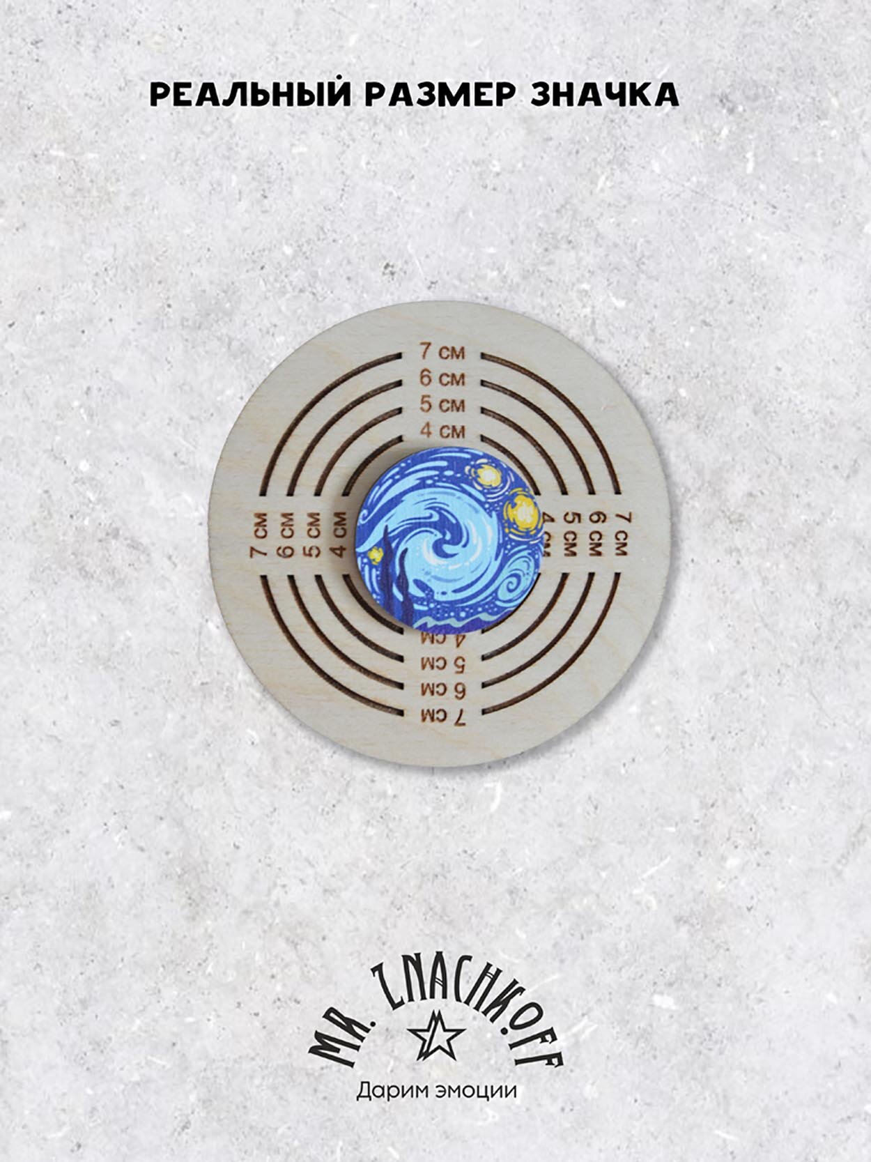 Значок Mr. Znachkoff "Звездная ночь", деревянный, 4х4 см, голубой интересное: