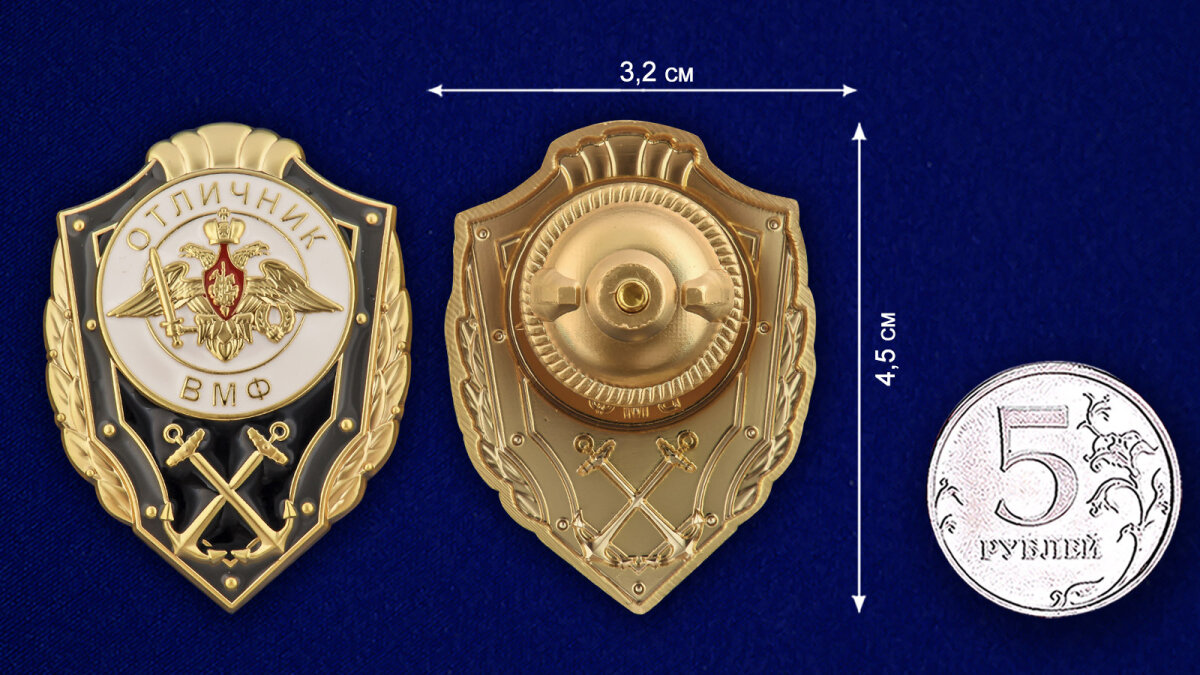 Купить Знак "Отличник ВМФ", муляж, латунь, размер 3,2х4,5см, винтовое крепление