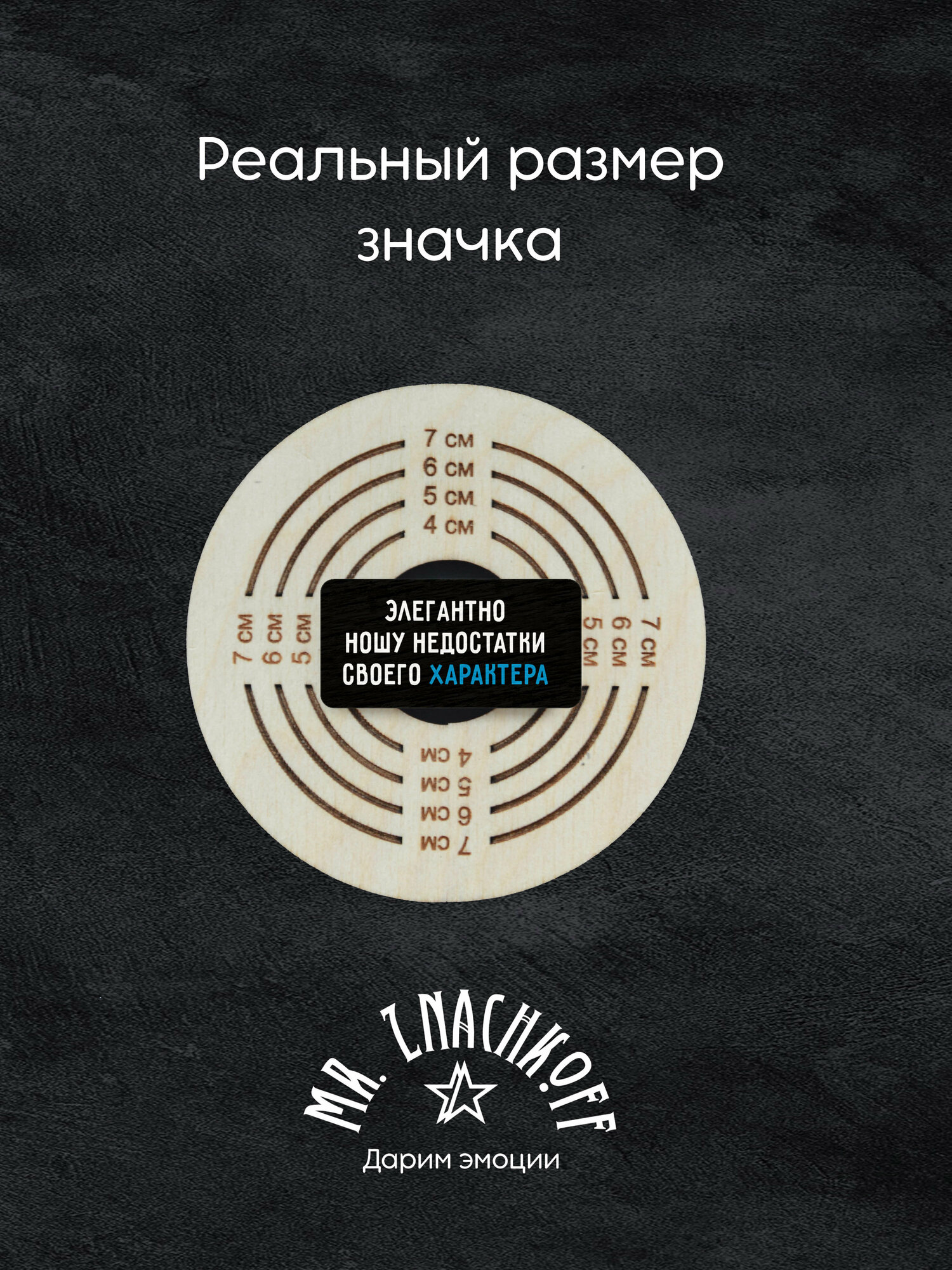 Значок Mr. Znachkoff "Недостатки характера", дерево, УФ-печать, влагостойкий лак, ручная сборка интересное:
