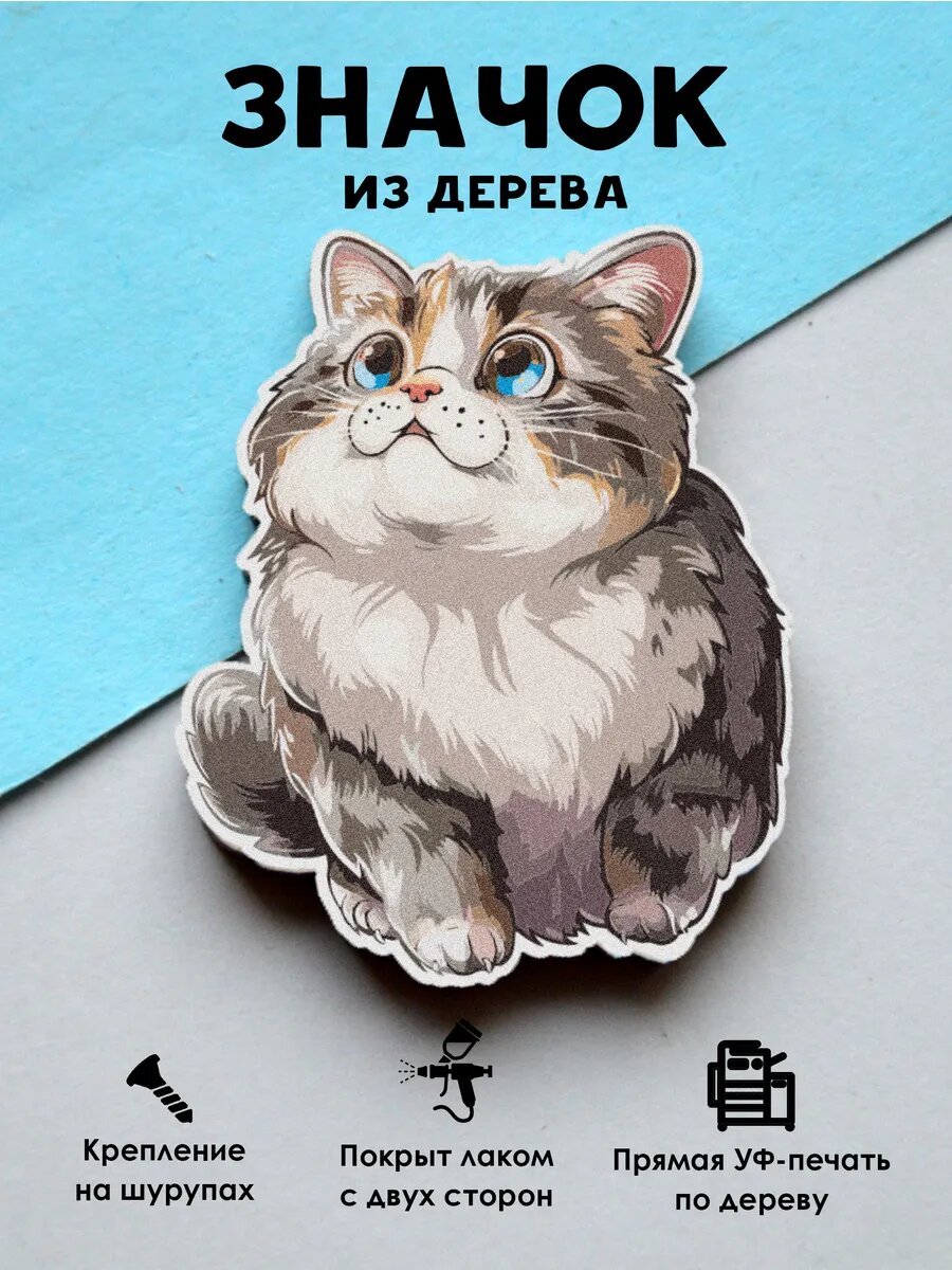 Купить Значок Mr. Znachkoff "Милый котик", дерево, УФ-печать, влагостойкий, на рюкзак