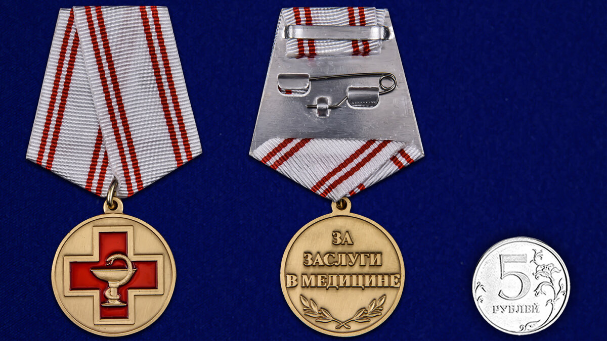 Купить Медаль "За заслуги в медицине", (муляж), латунь, диаметр 32мм