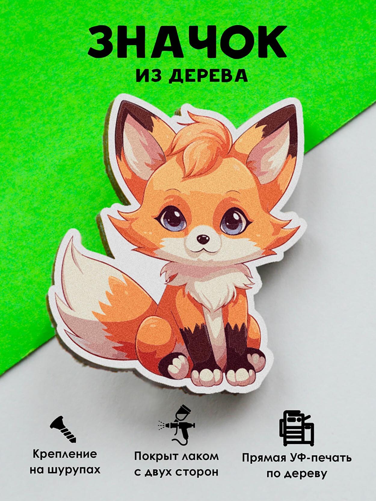 Значок Mr. Znachkoff "Милая лисичка", дерево, УФ-печать, влагостойкий лак, ручная сборка, на рюкзак интересное: