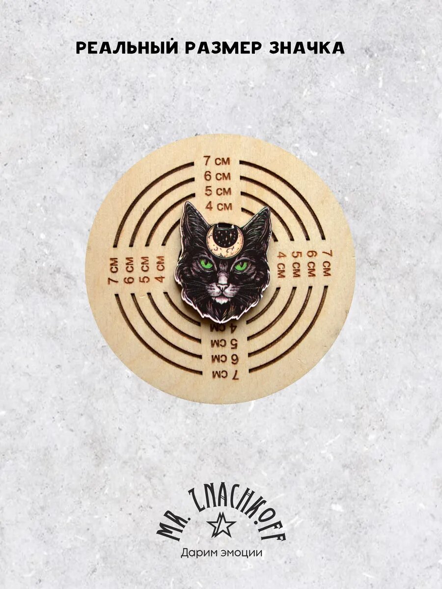 Значок Mr. Znachkoff "Кот с луной", дерево, УФ-печать, влагостойкий лак, на рюкзак интересное: