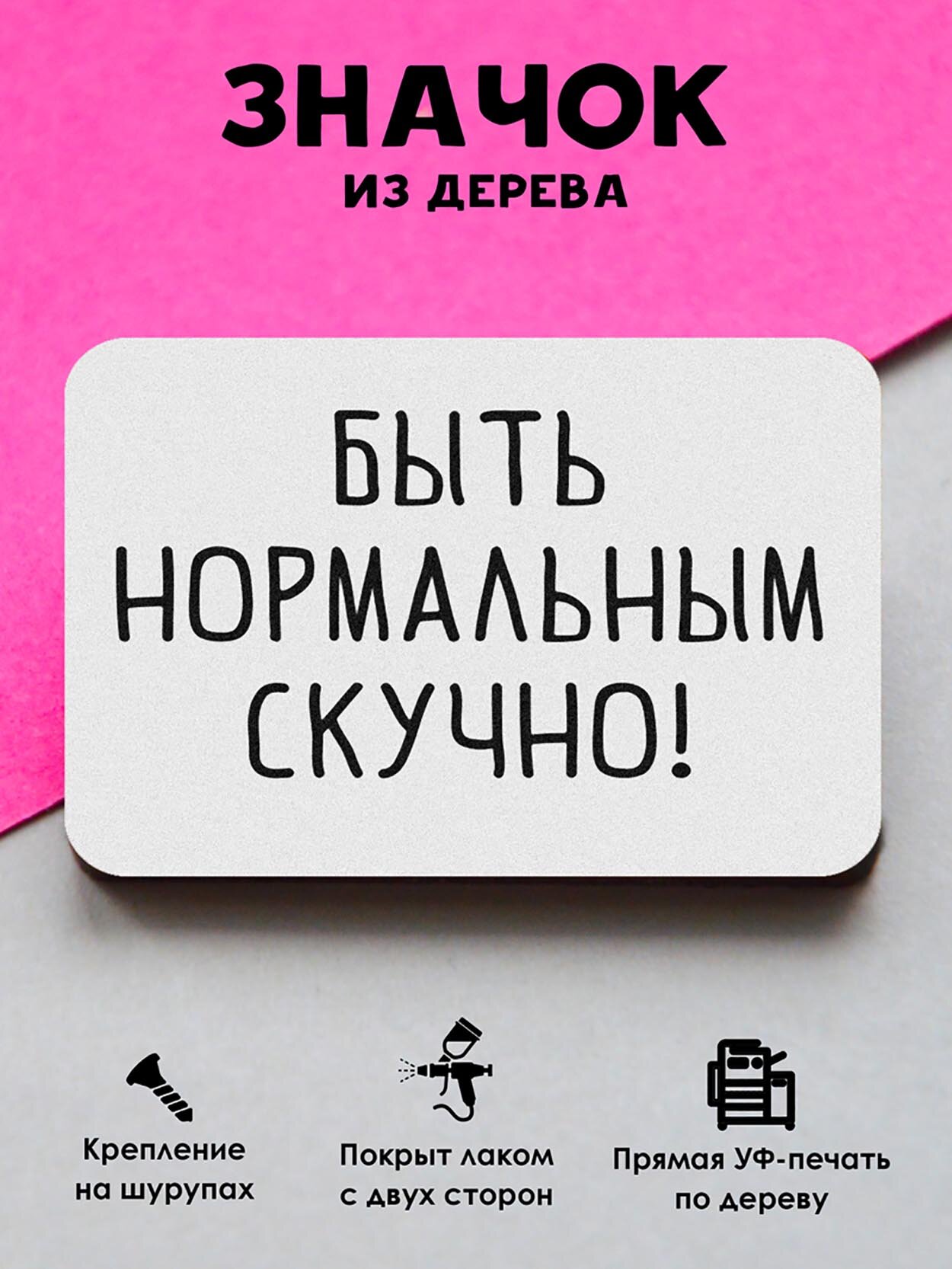 Значок Mr. Znachkoff "Быть нормальным скучно", дерево, ручная сборка, УФ-принт, 4х4 см интересное: