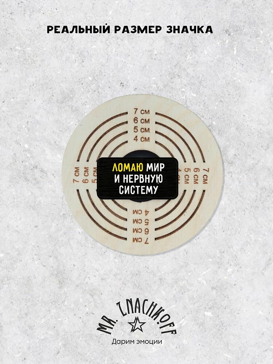 Значок Mr. Znachkoff "Ломаю мир", дерево, УФ-печать, влагостойкий лак, ручная сборка интересное: