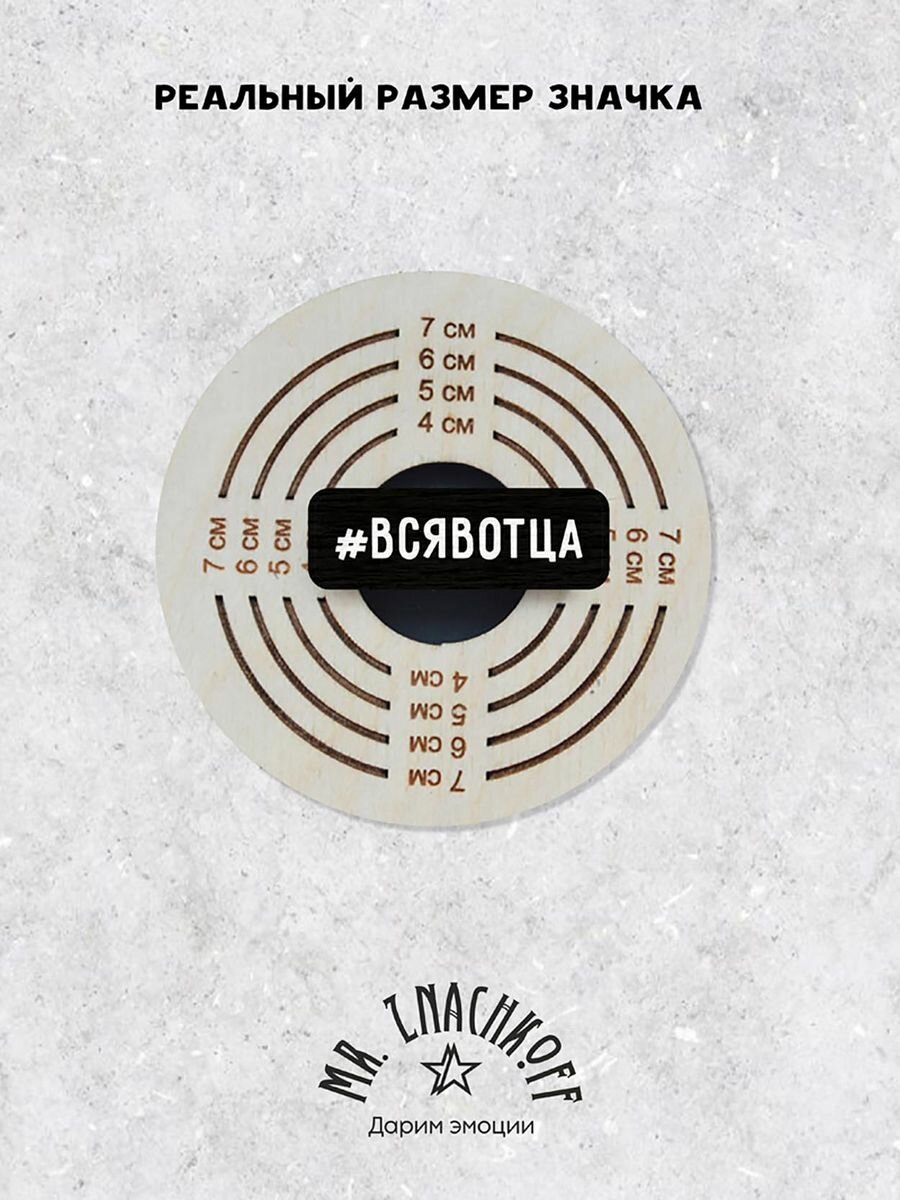 Значок Mr. Znachkoff "Вся в отца", дерево, УФ-печать, влагостойкий лак, ручная сборка интересное: