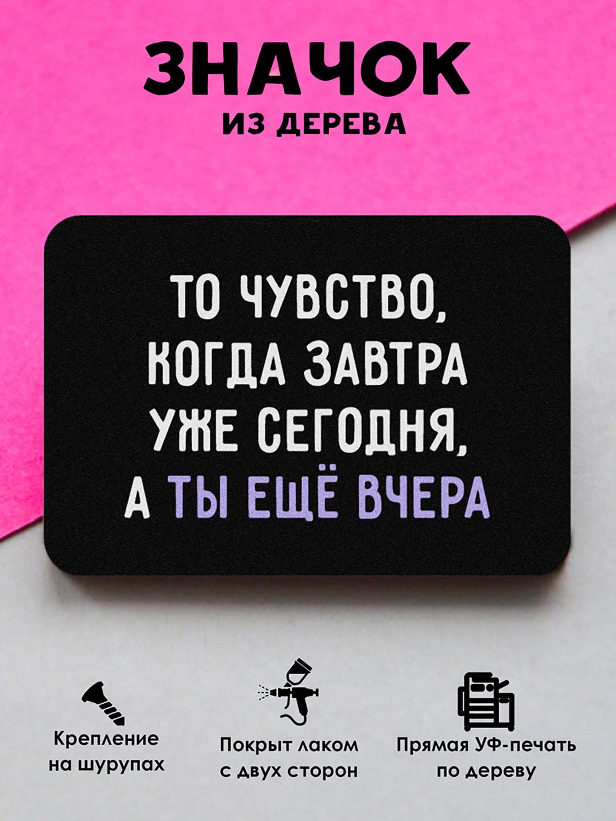 Значок Mr. Znachkoff "Еще вчера", дерево, УФ-печать, влагостойкий лак, ручная сборка интересное: