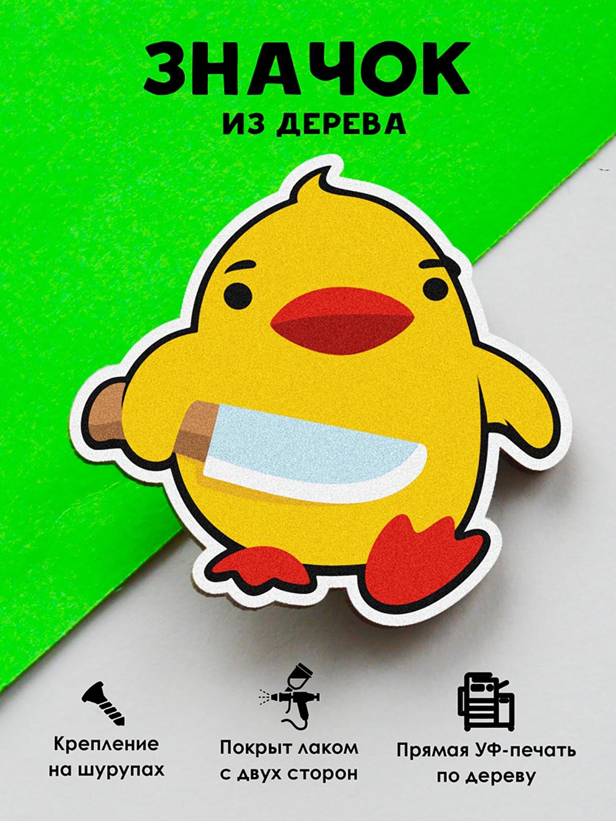 Значок Mr. Znachkoff "Уточка с ножом", дерево, ручная работа, УФ-принт, 4х4 см интересное: