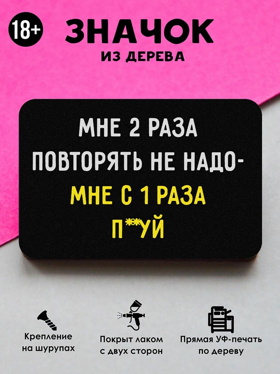 Значок Mr. Znachkoff "Мне два раза повторять не надо", дерево, УФ-печать, влагостойкий лак интересное:
