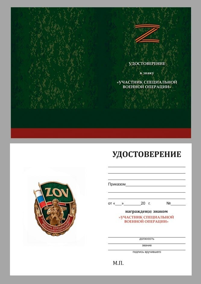 Купить Знак ZOV "Участник СВО", муляж, латунь, размер 3,5х4,5см, винтовое крпеление
