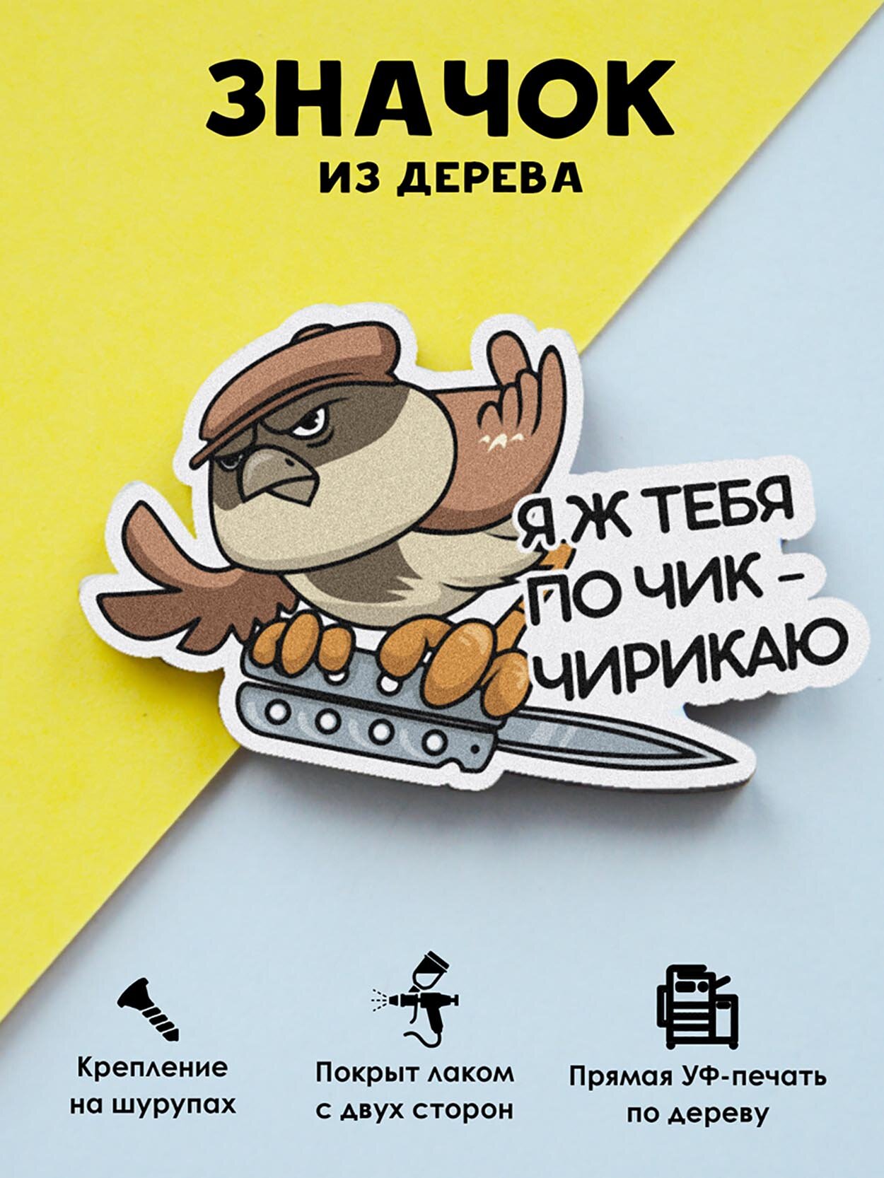 Значок Mr. Znachkoff "Я ж тебя по чик чирикаю", дерево, УФ-печать, влагостойкий лак, ручная сборка, на рюкзак интересное: